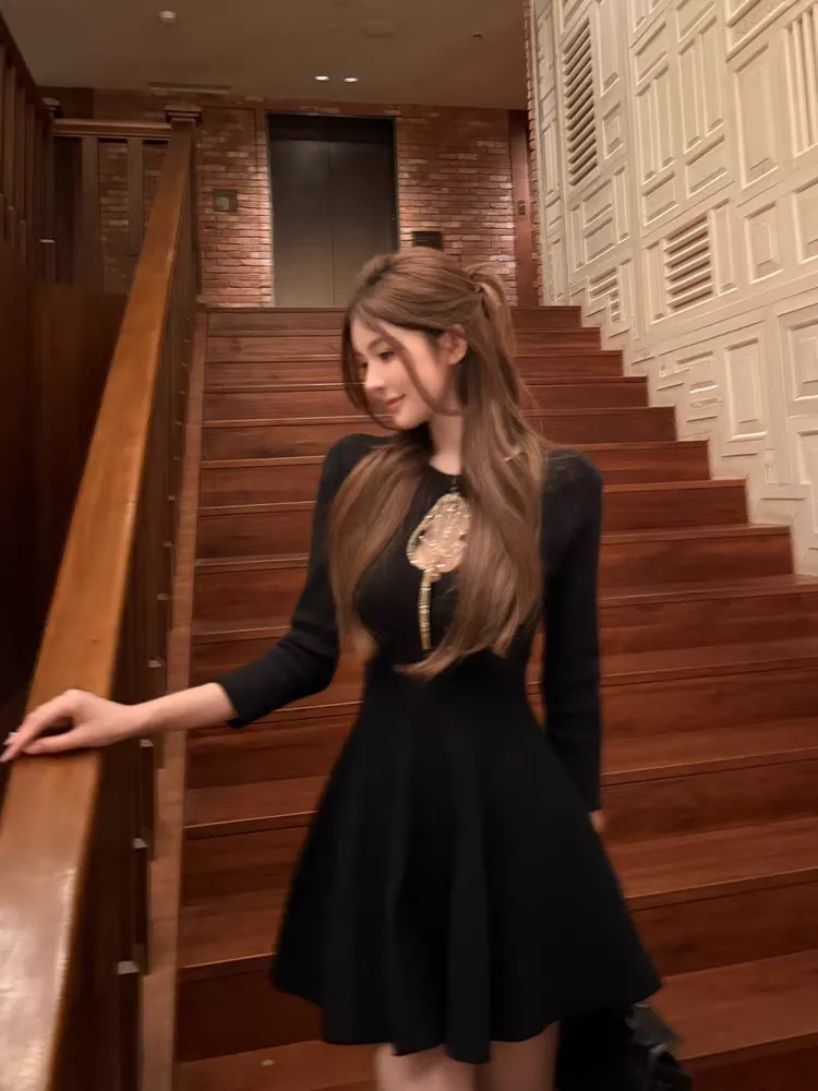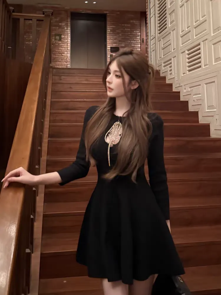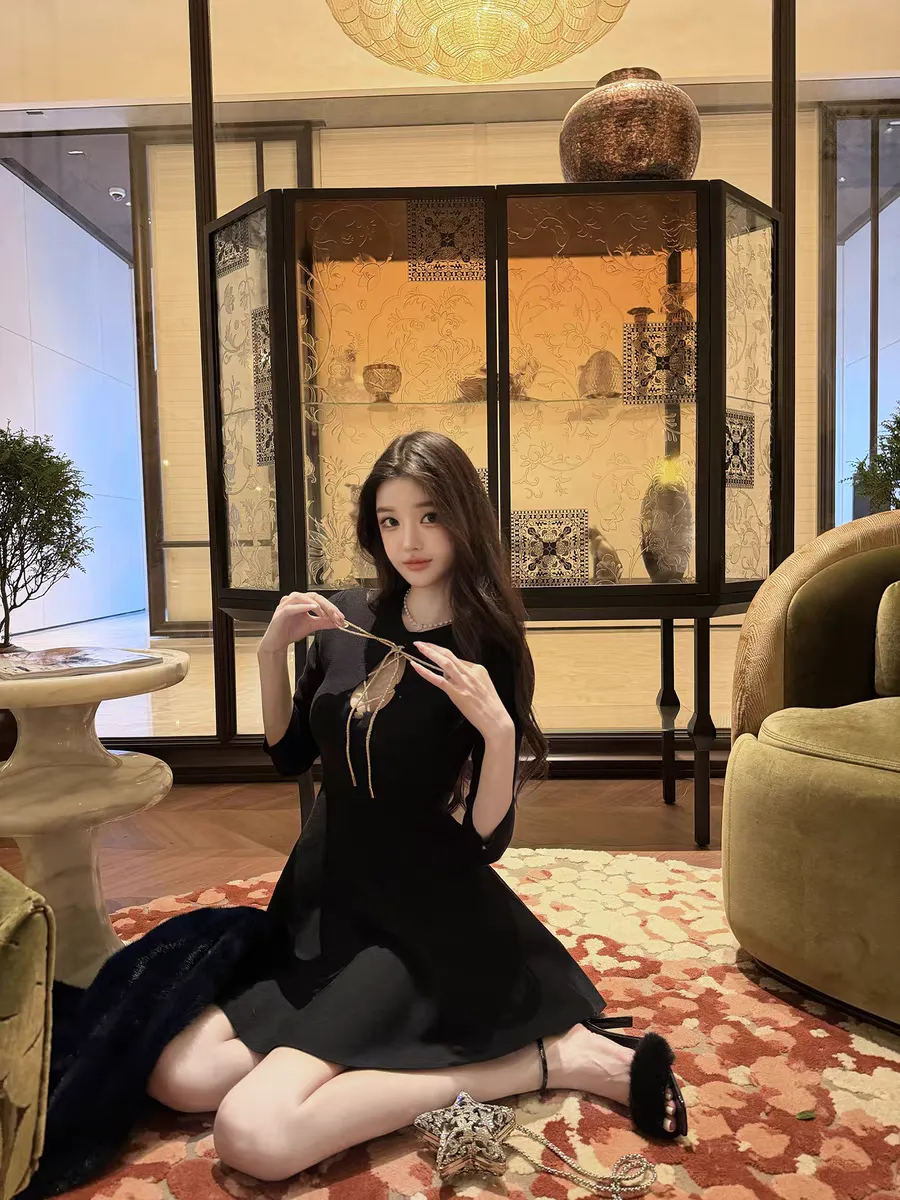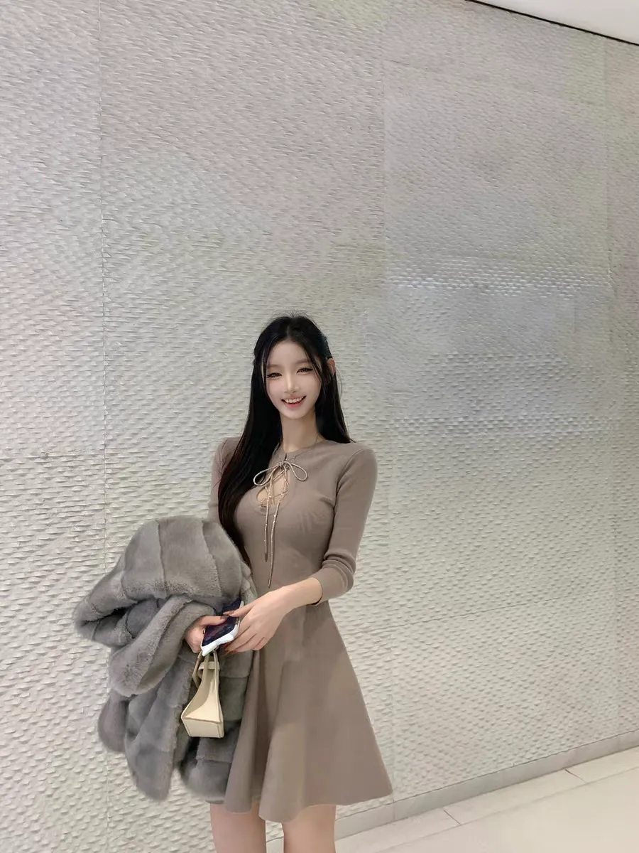 【松间布月】七分袖针织纯欲绑带连衣裙