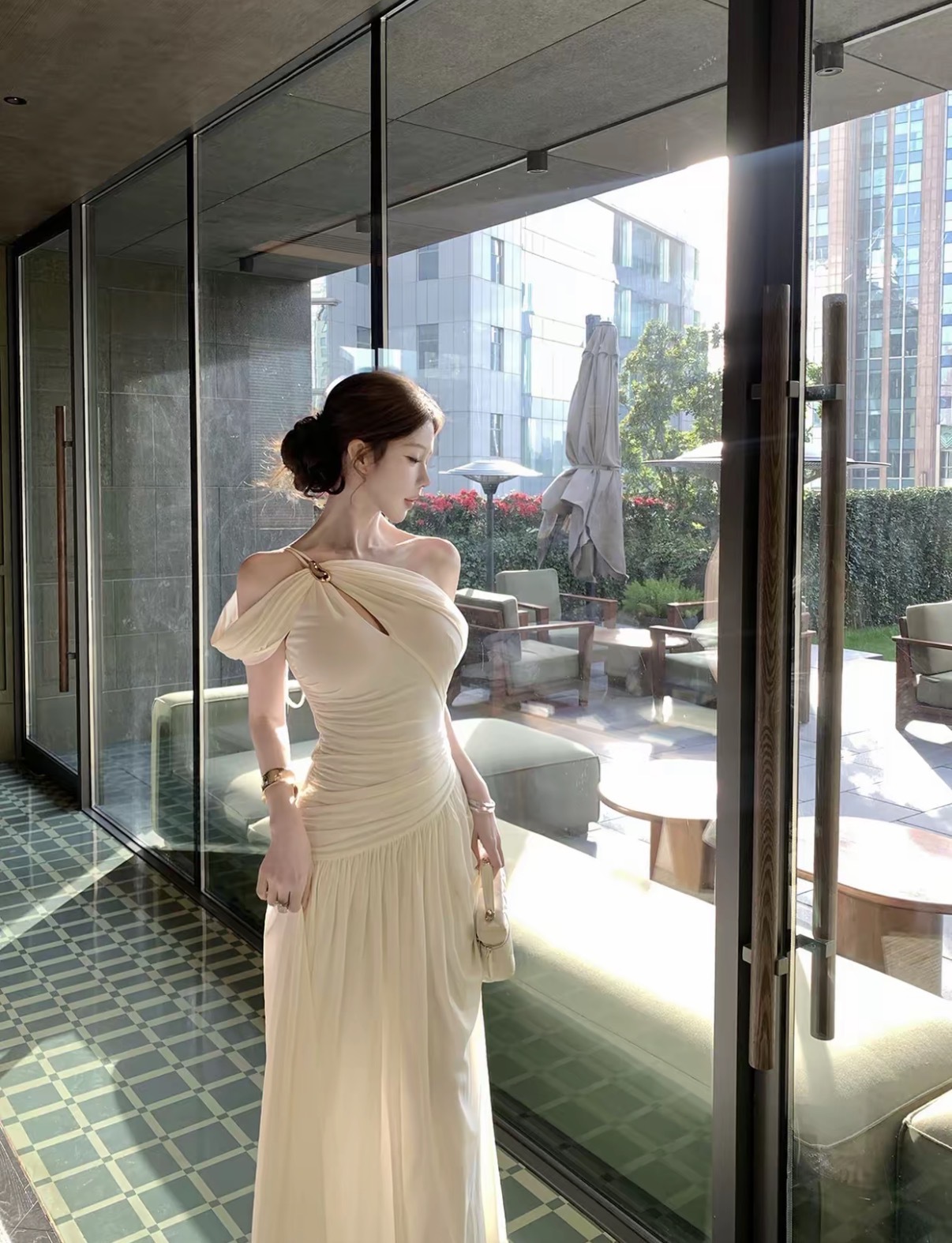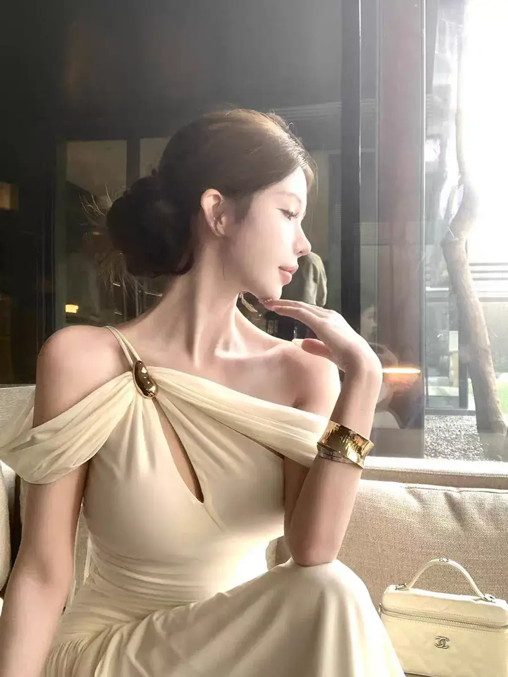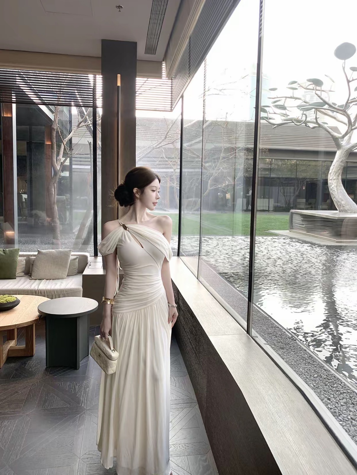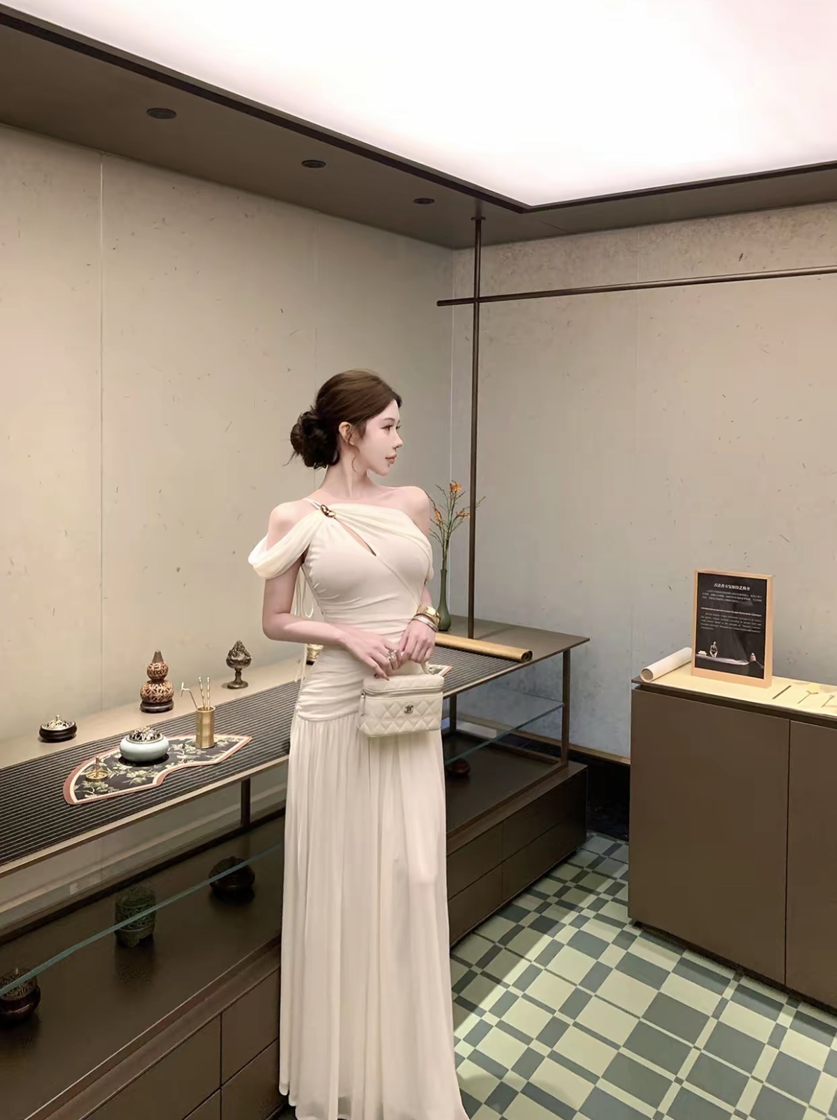 【清冷矜雅】法式氛围感斜肩扭结设计长裙性感纯欲连衣裙