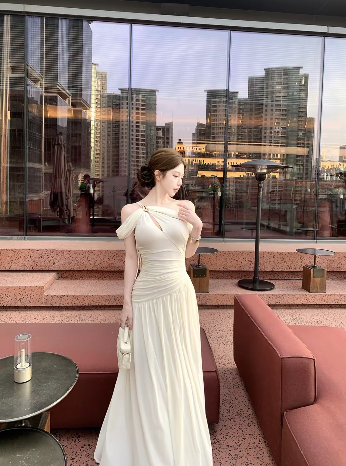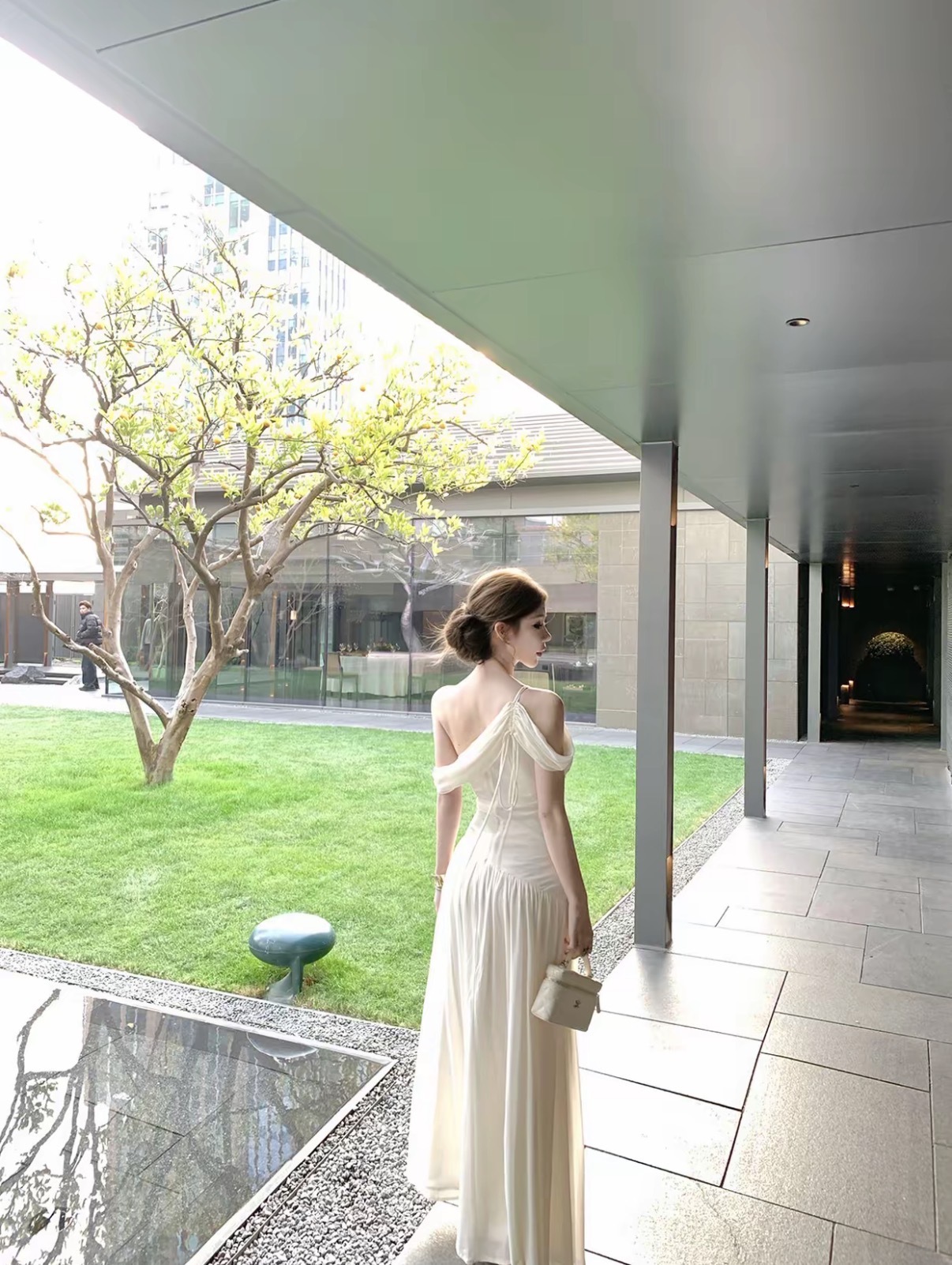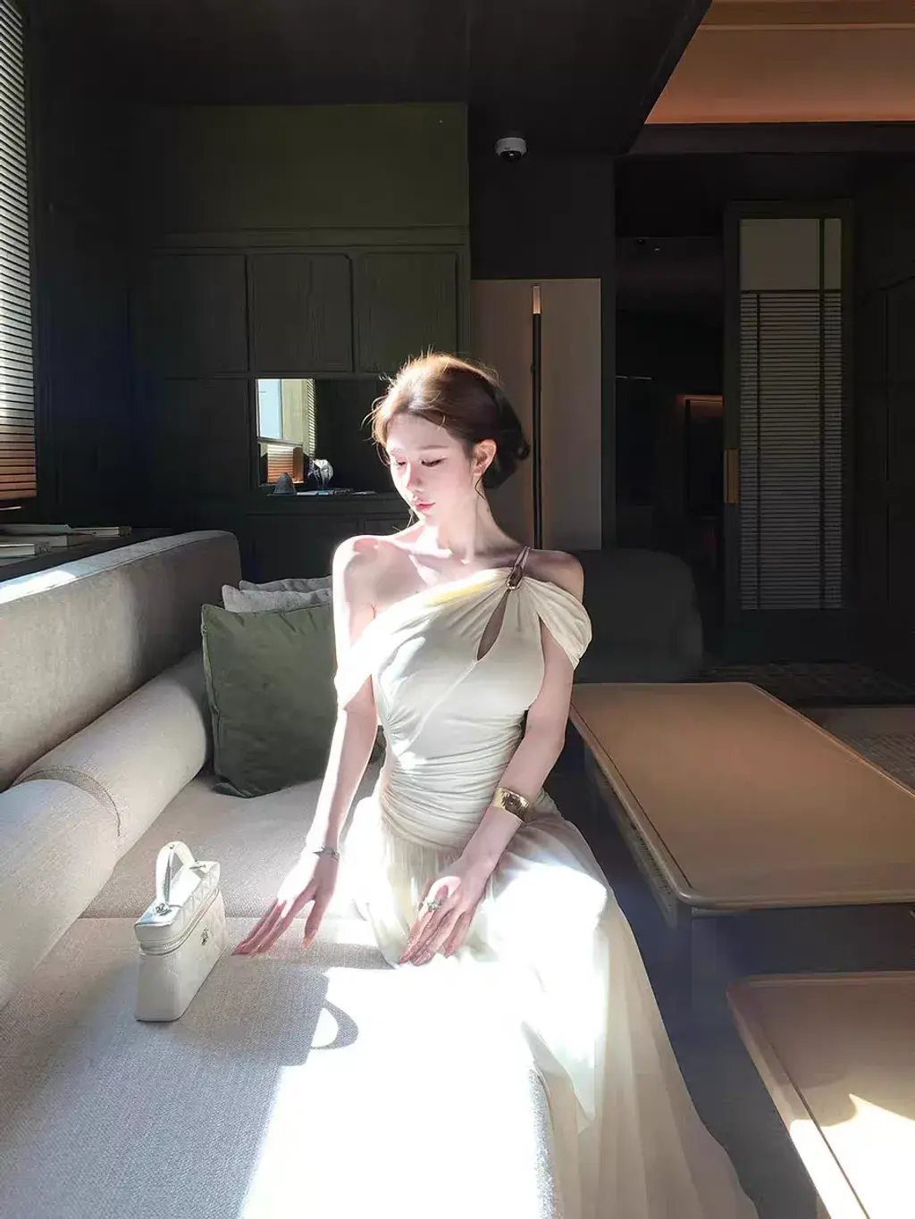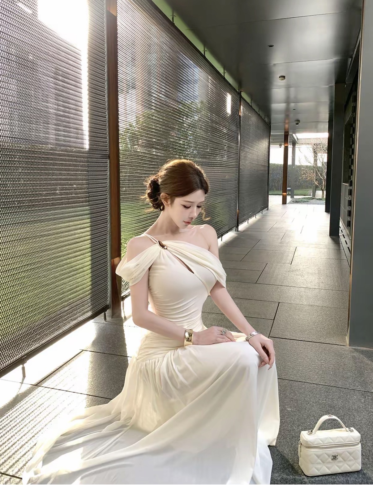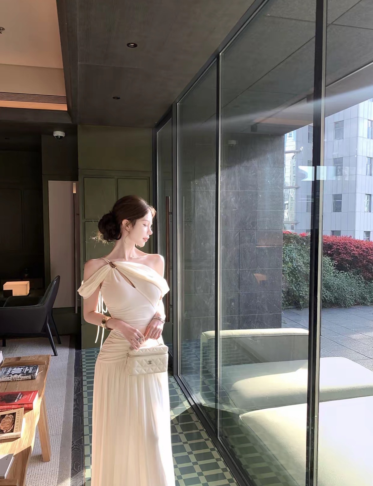 【清冷矜雅】法式氛围感斜肩扭结设计长裙性感纯欲连衣裙
