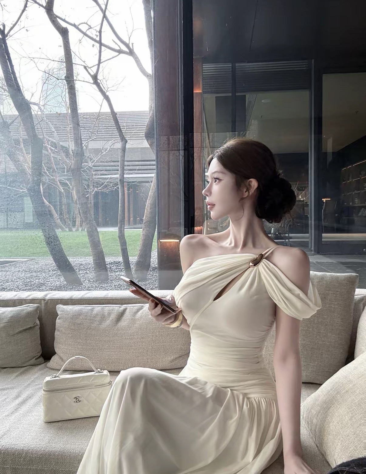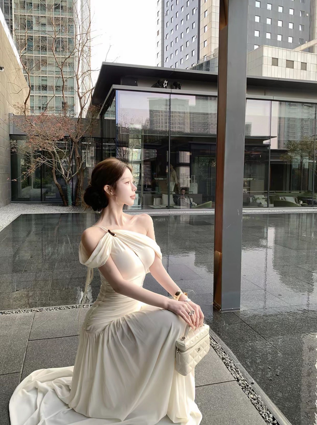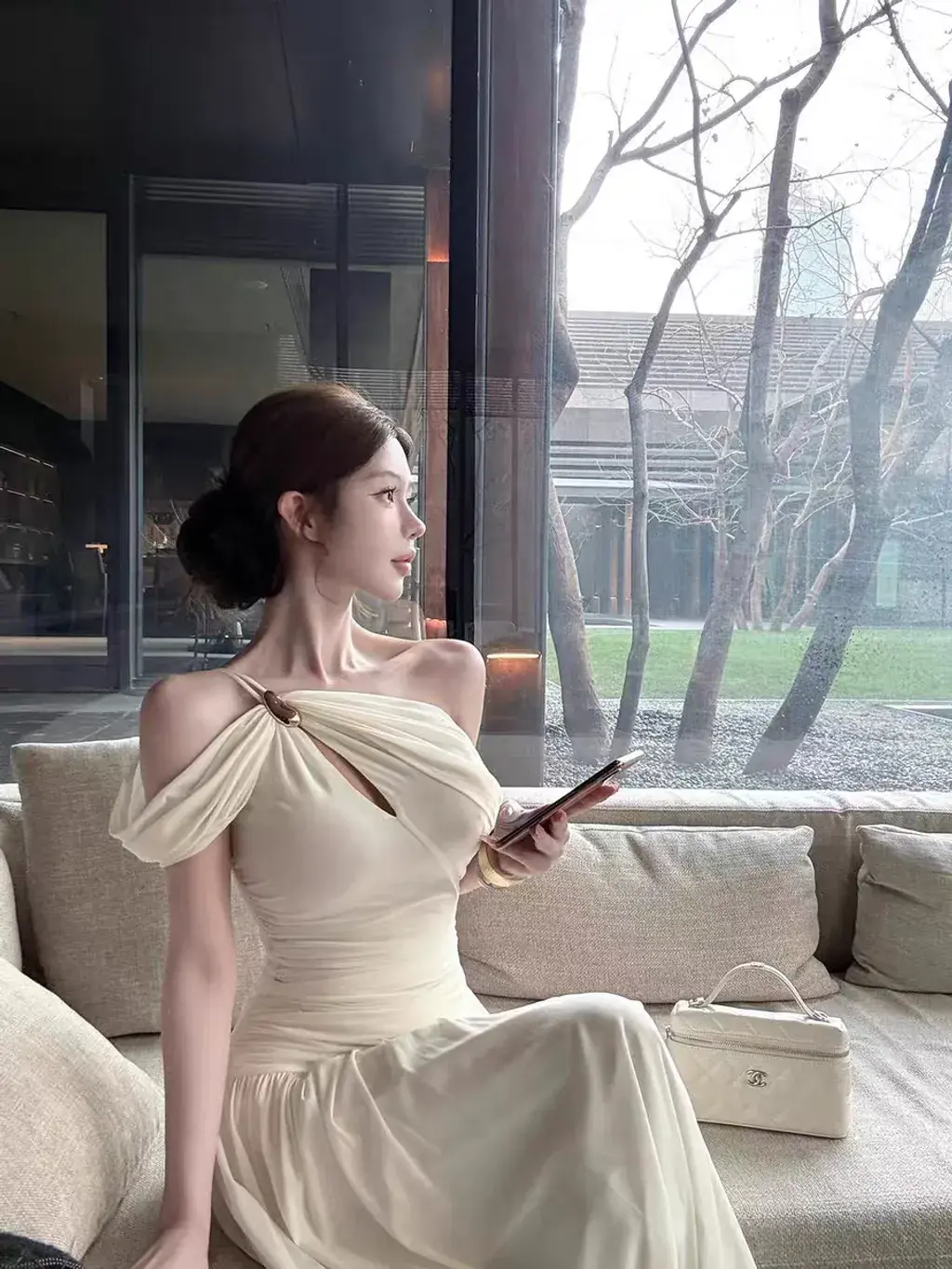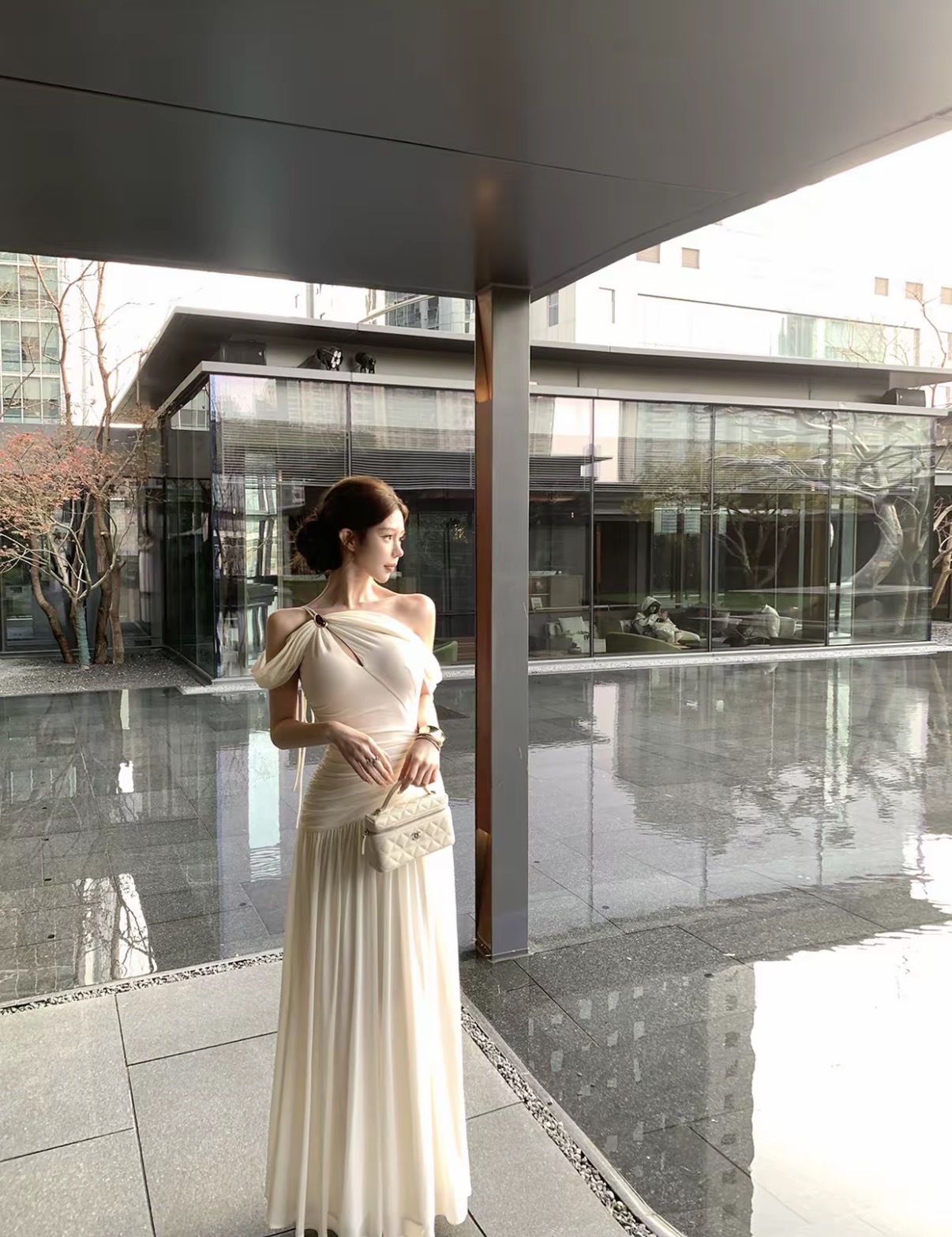 【清冷矜雅】法式氛围感斜肩扭结设计长裙性感纯欲连衣裙