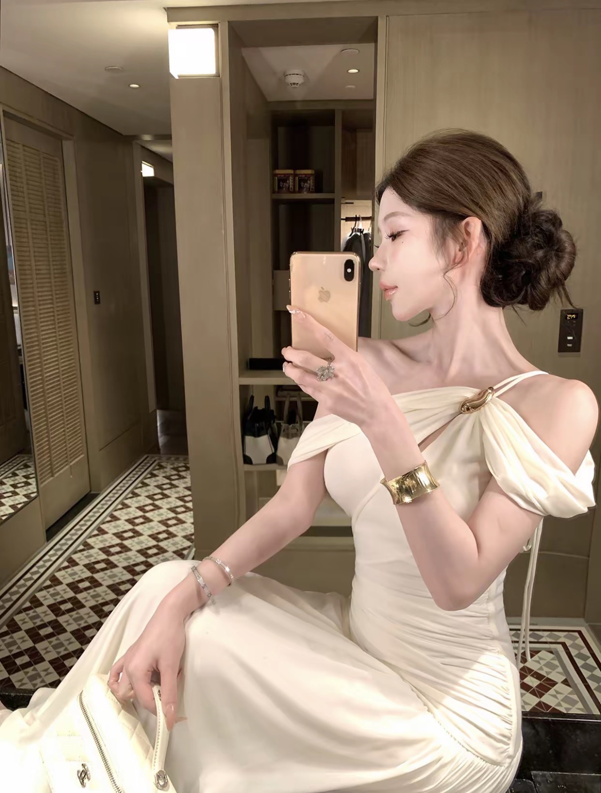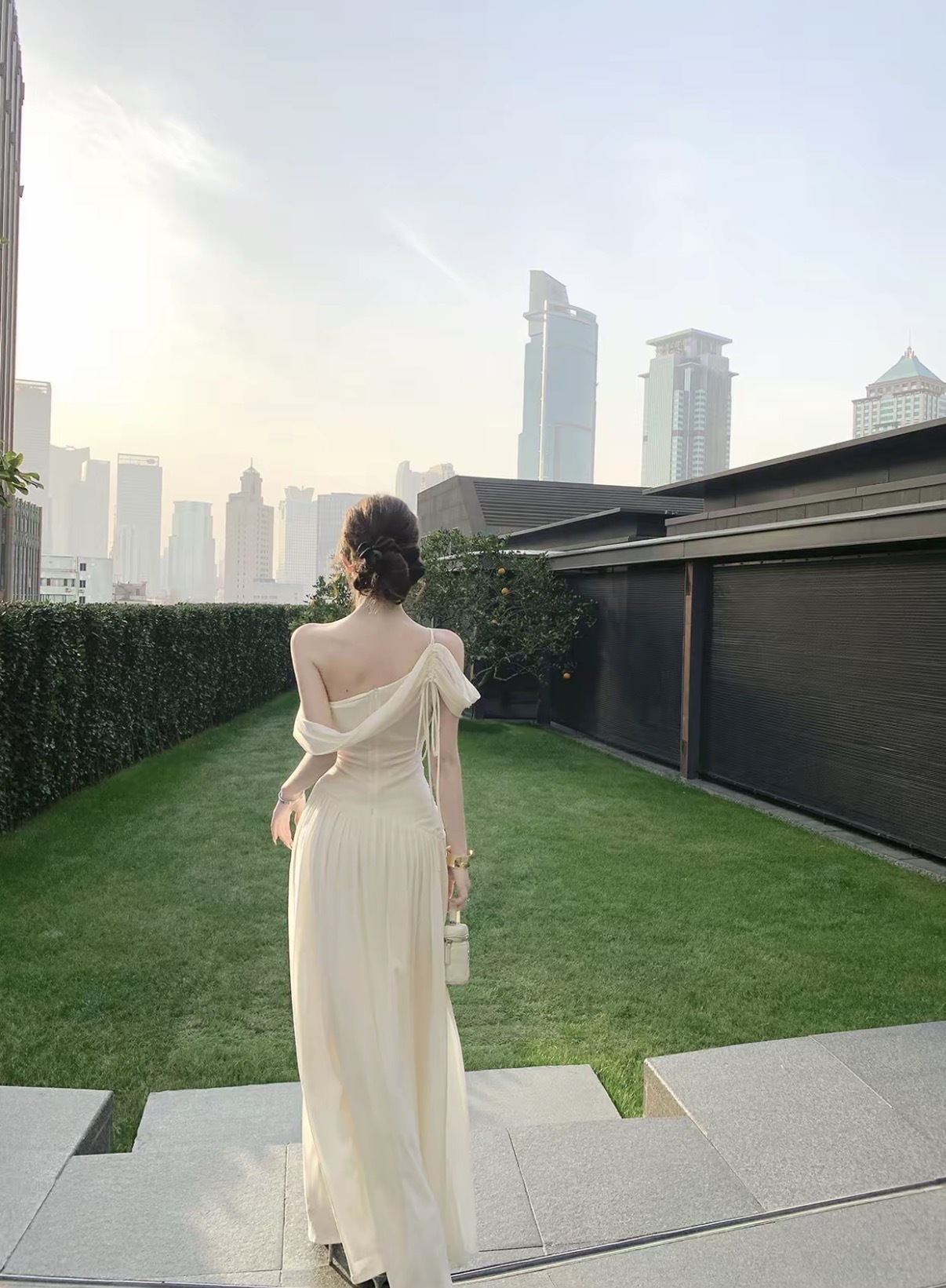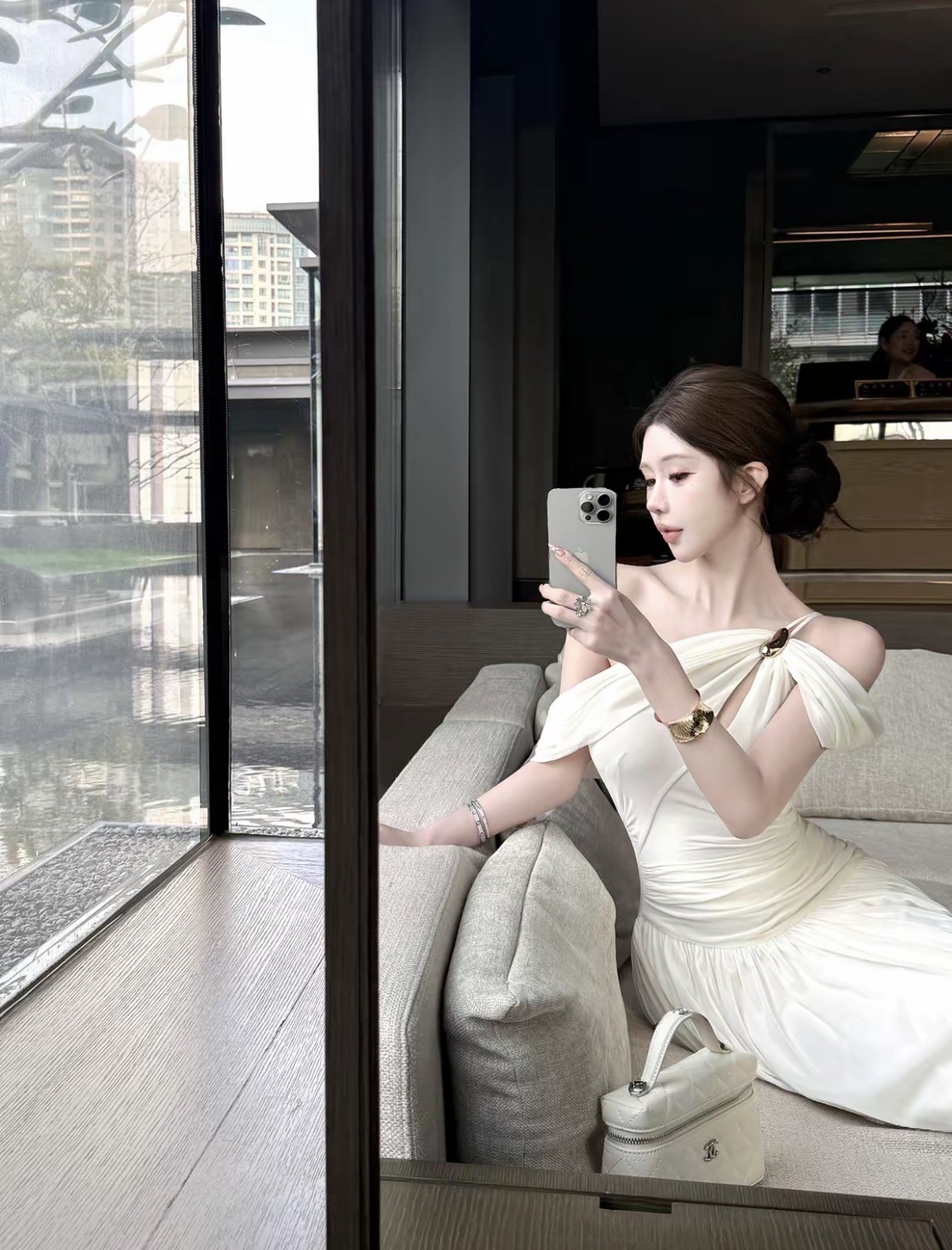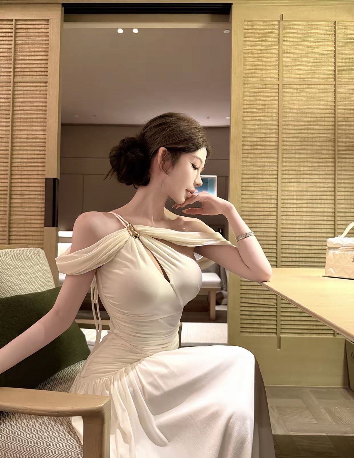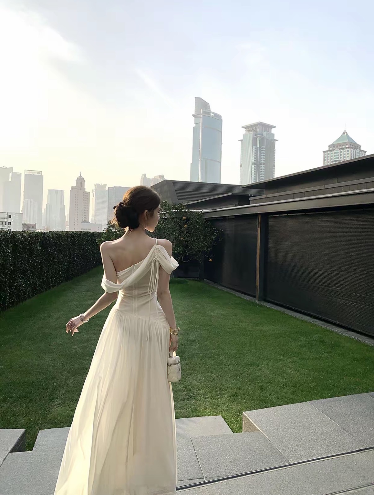 【清冷矜雅】法式氛围感斜肩扭结设计长裙性感纯欲连衣裙