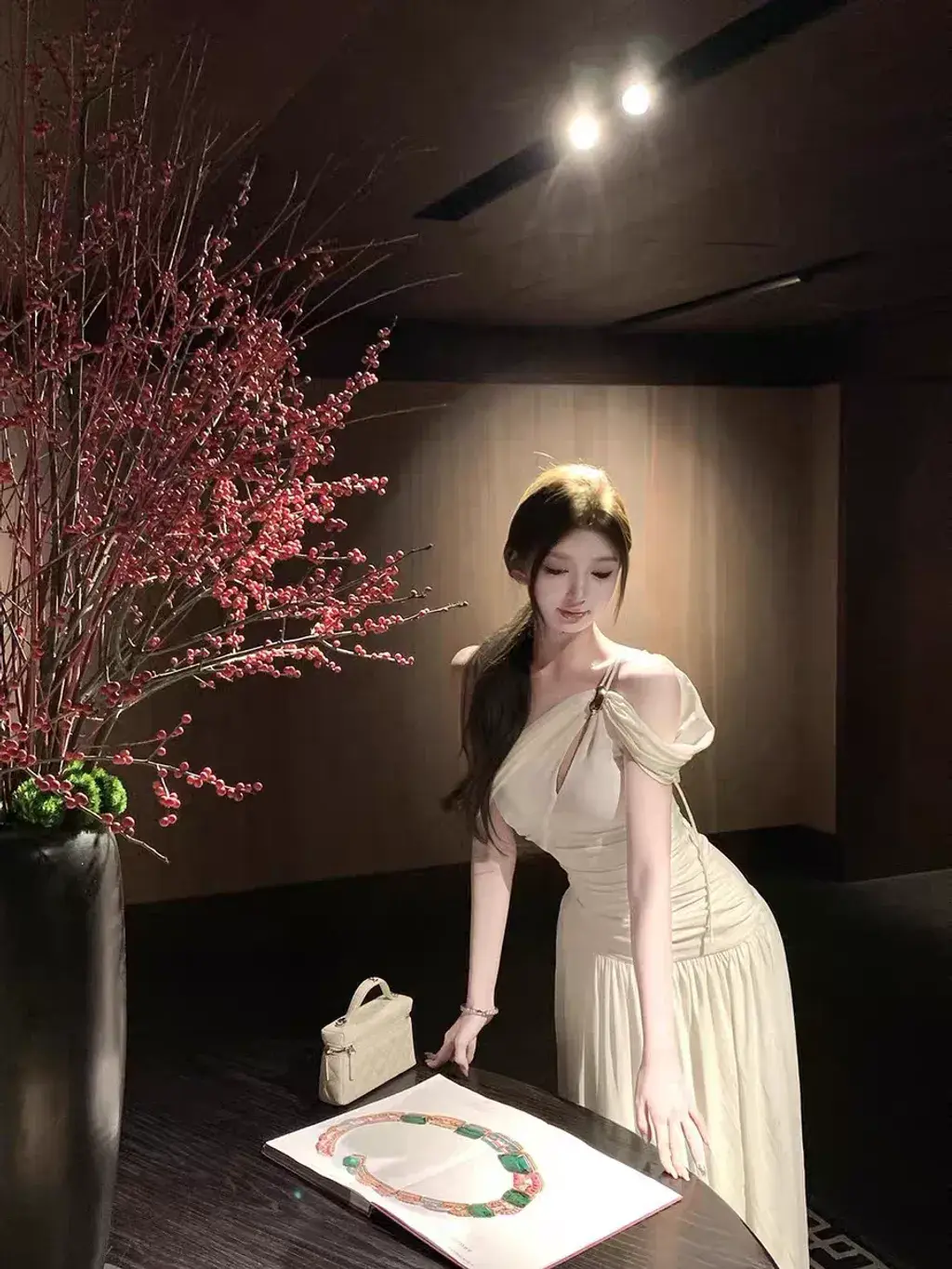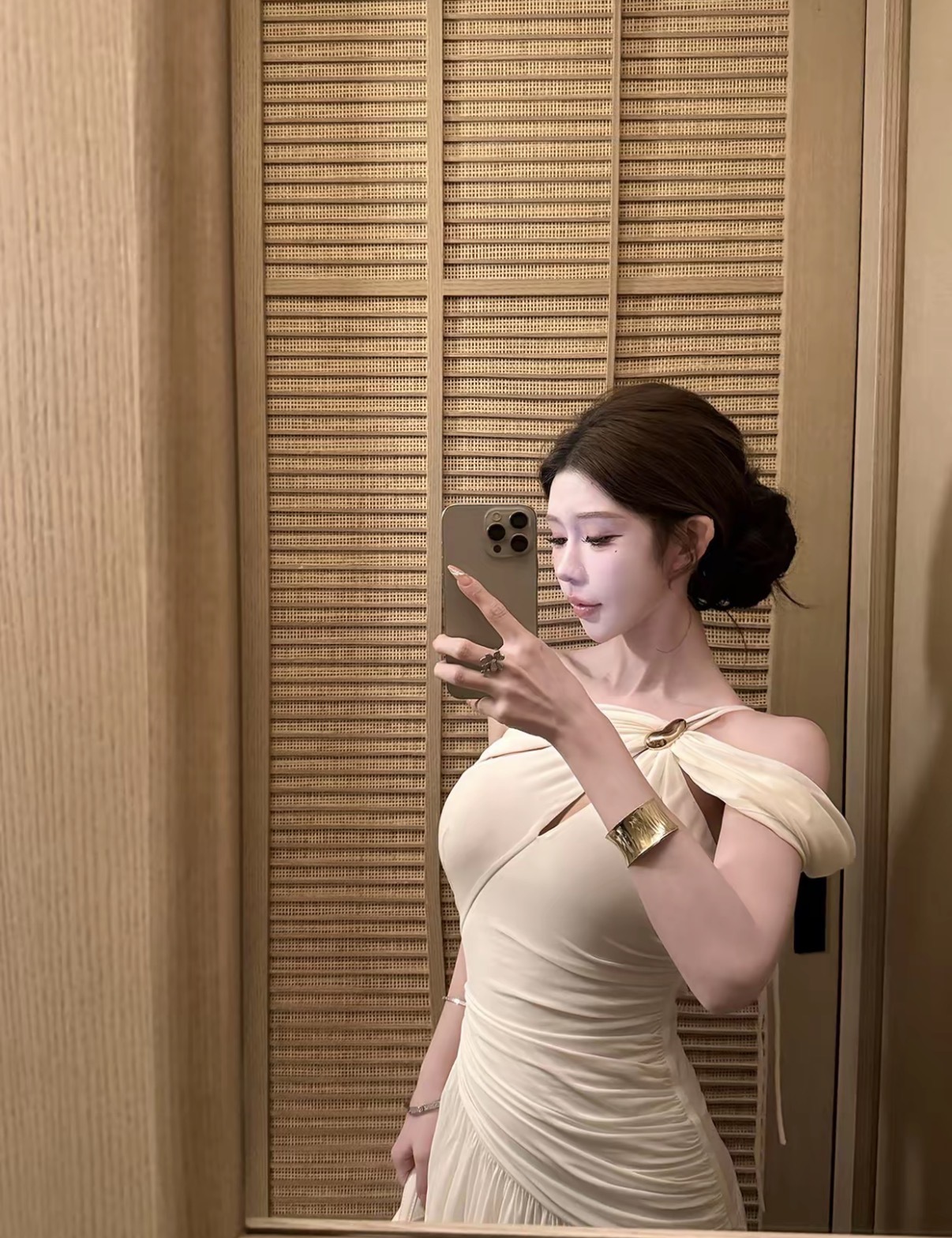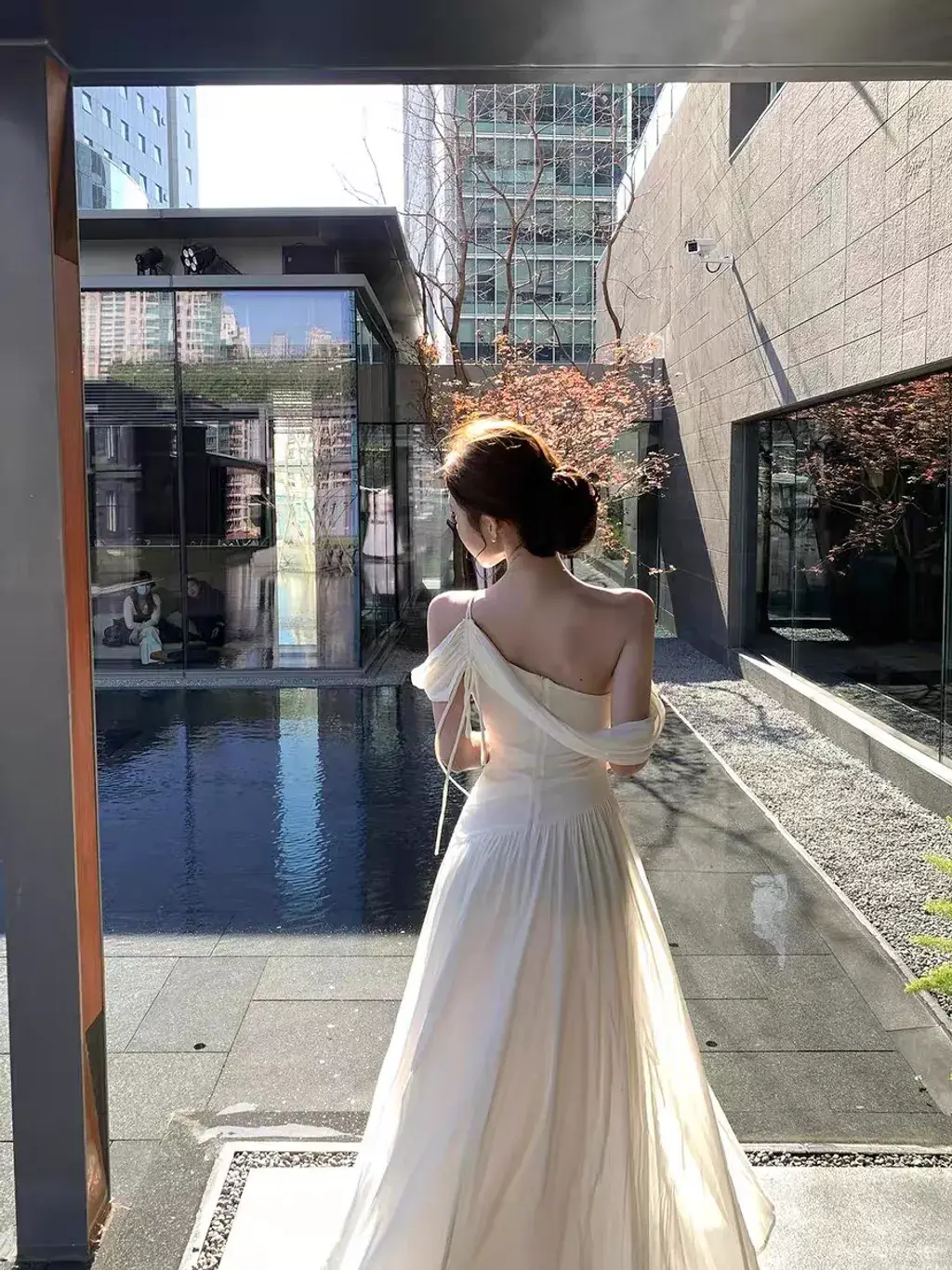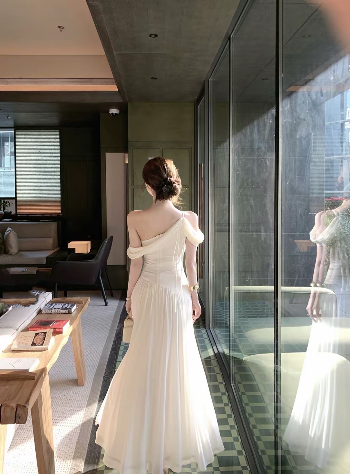 【清冷矜雅】法式氛围感斜肩扭结设计长裙性感纯欲连衣裙