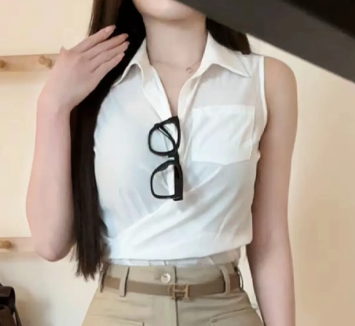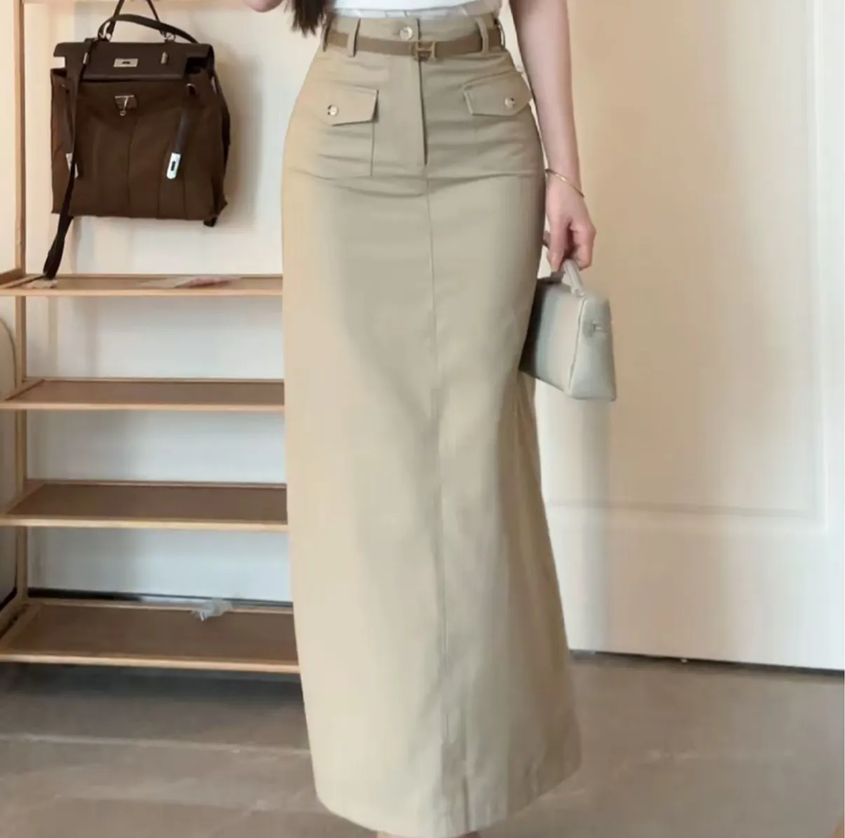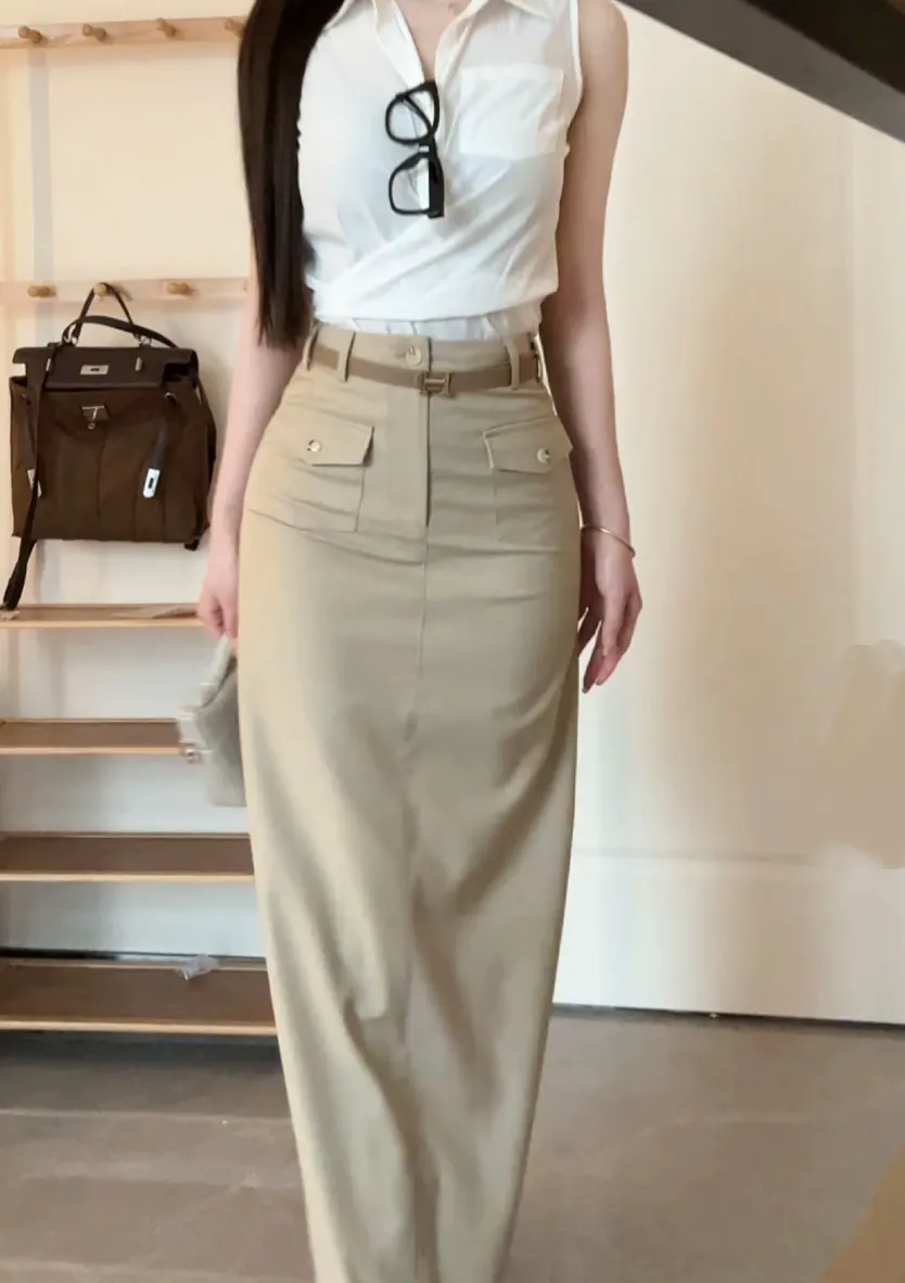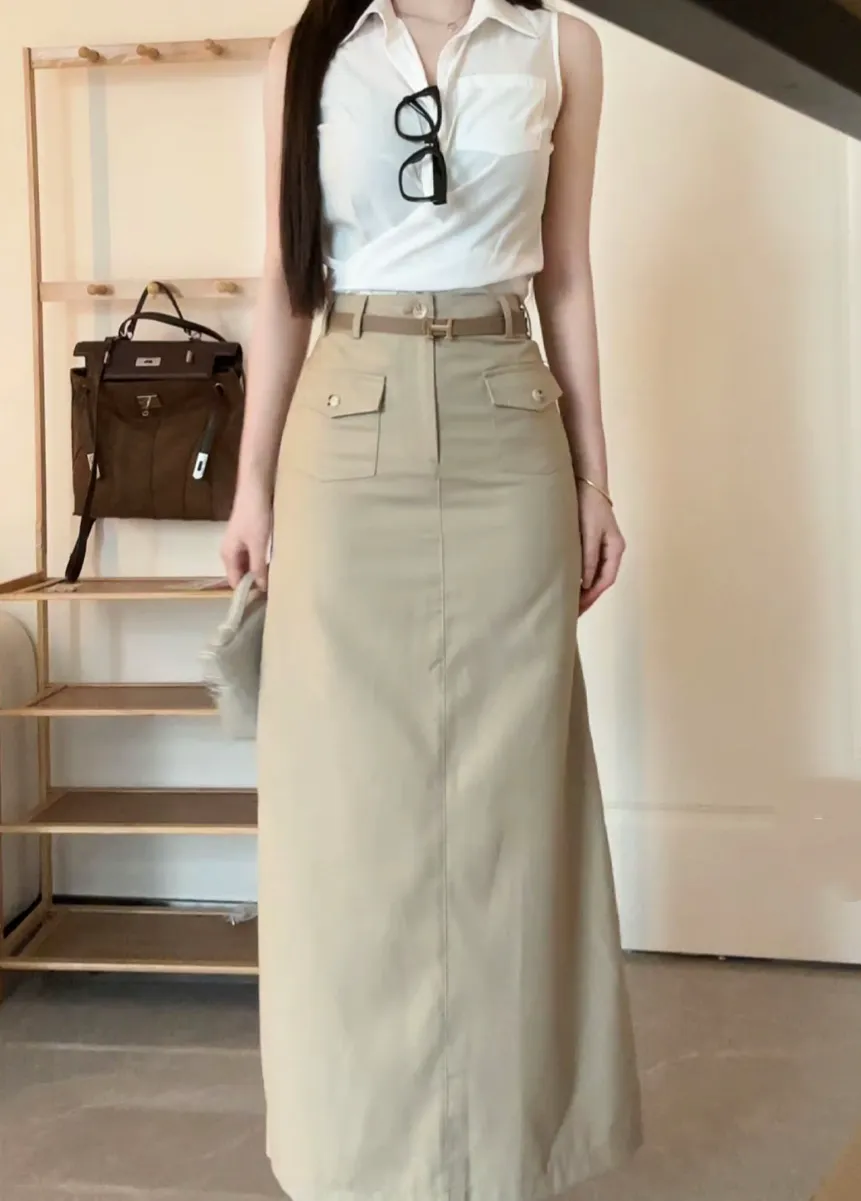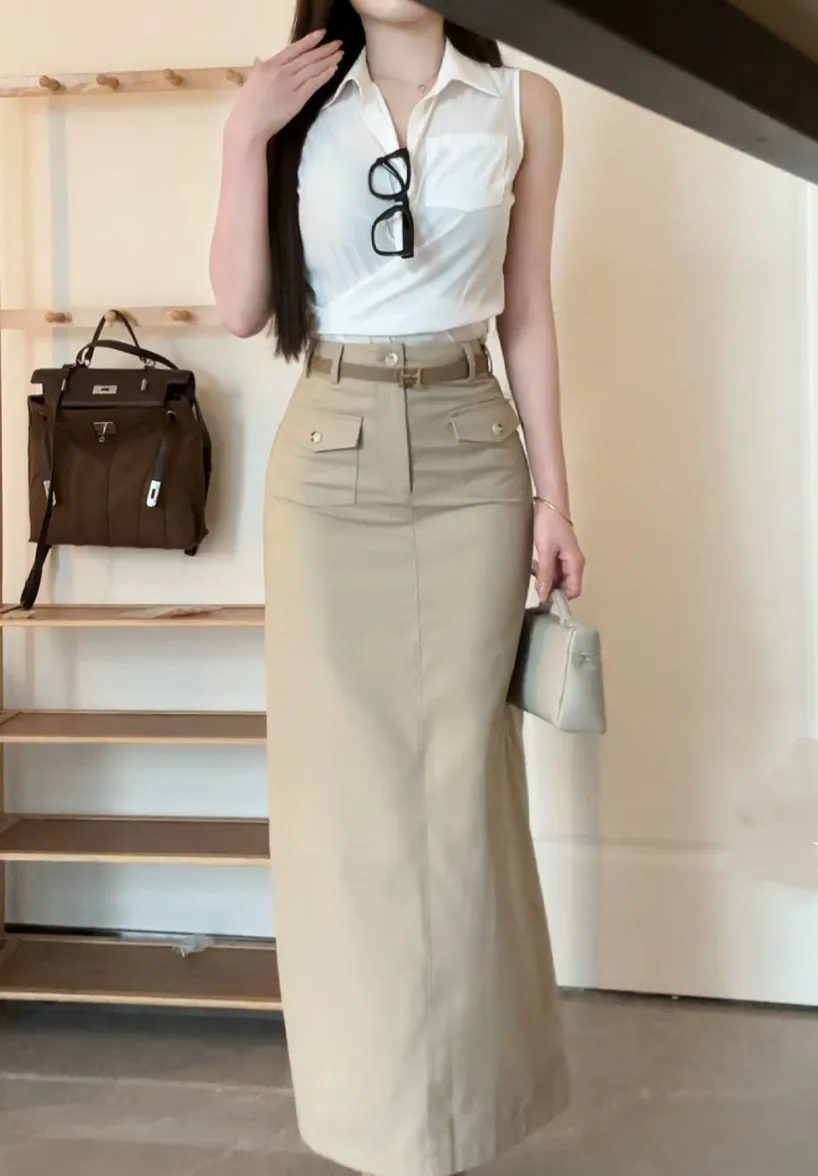 【透叶微光】复古老钱风衬衫上衣+工装高腰半身裙