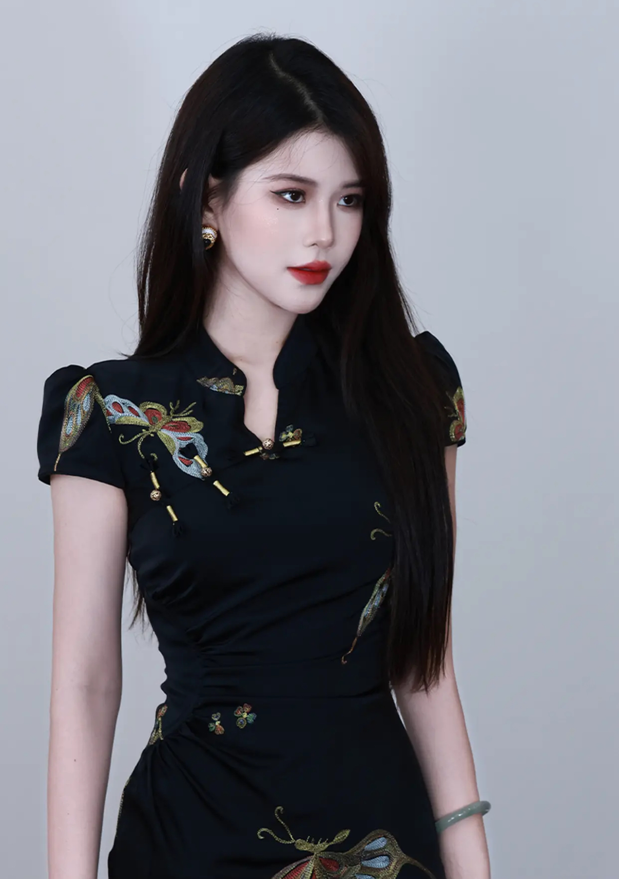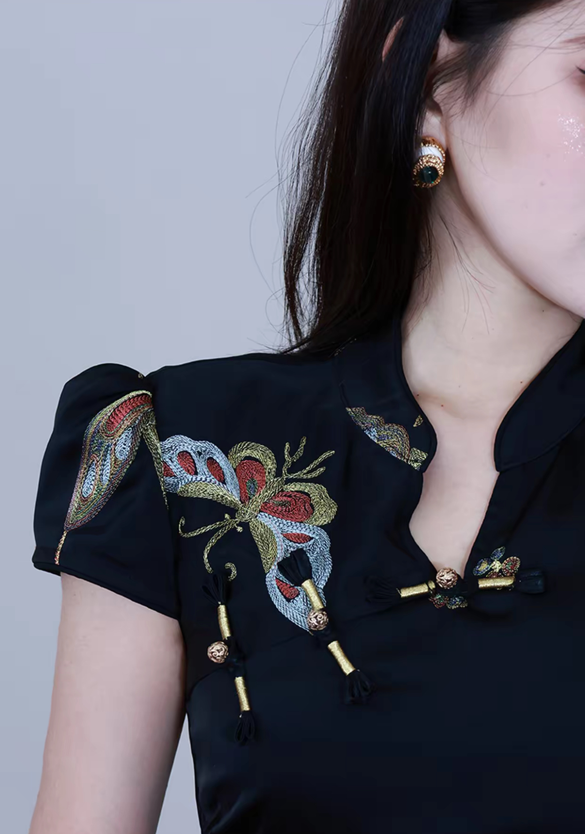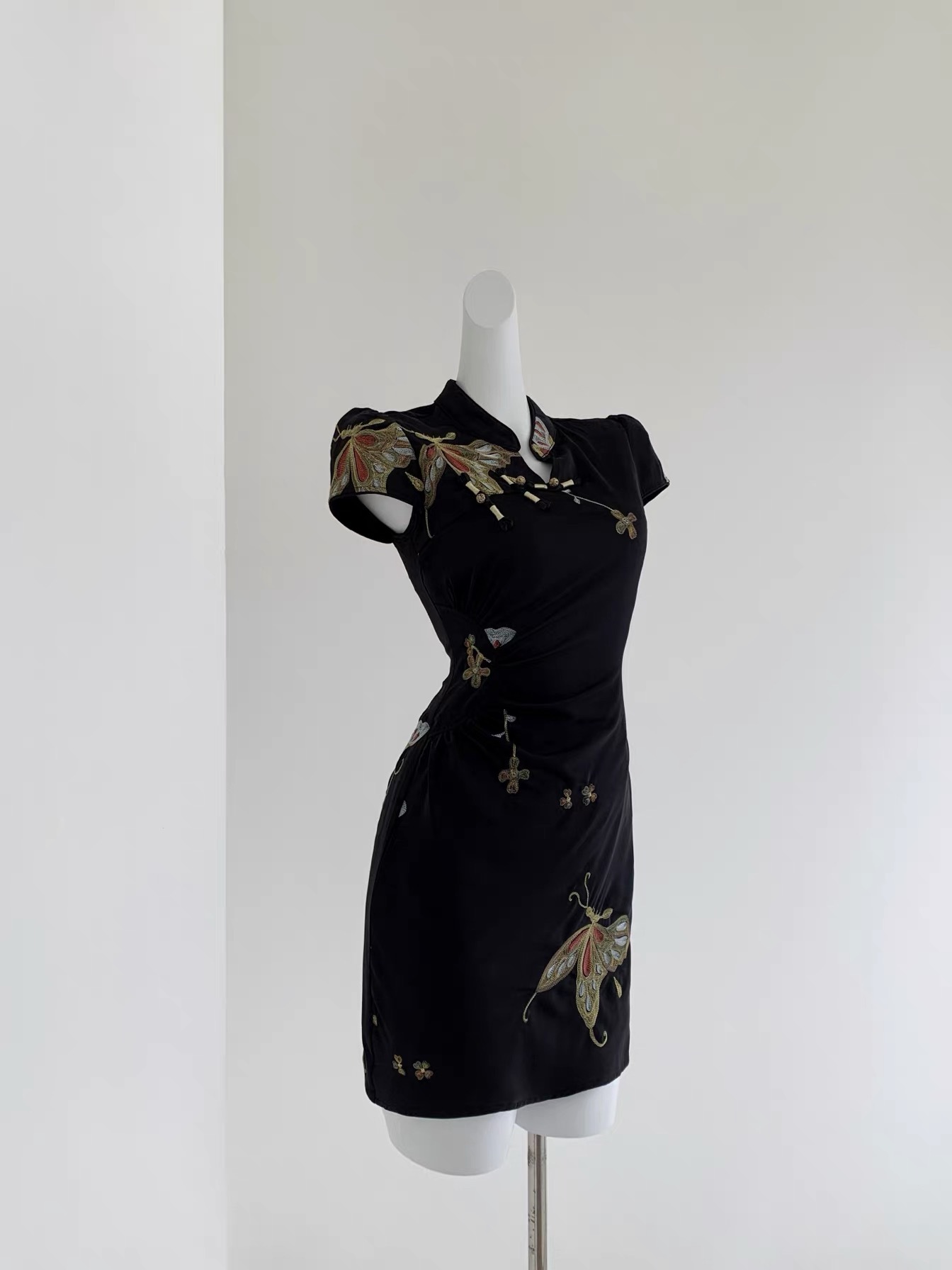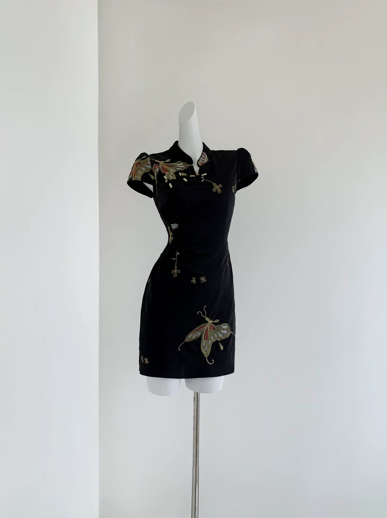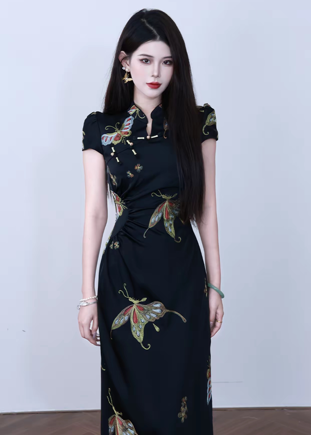 【墨华碟】新中式改良国风蝴蝶刺绣旗袍裙
