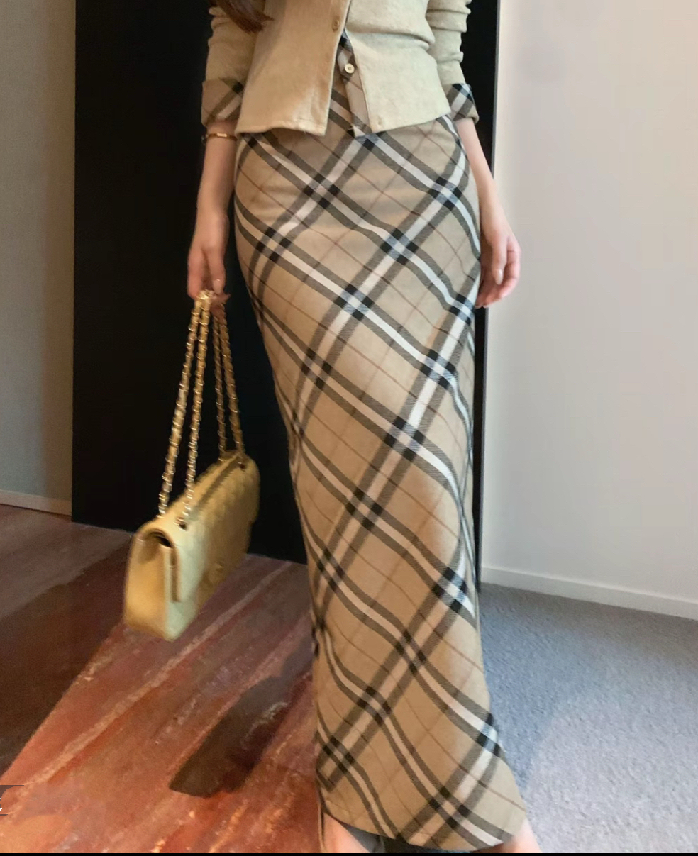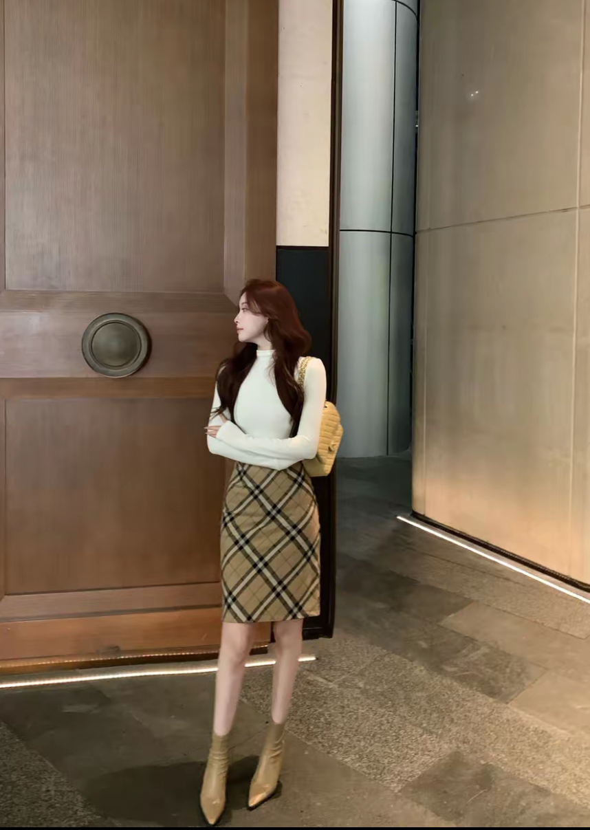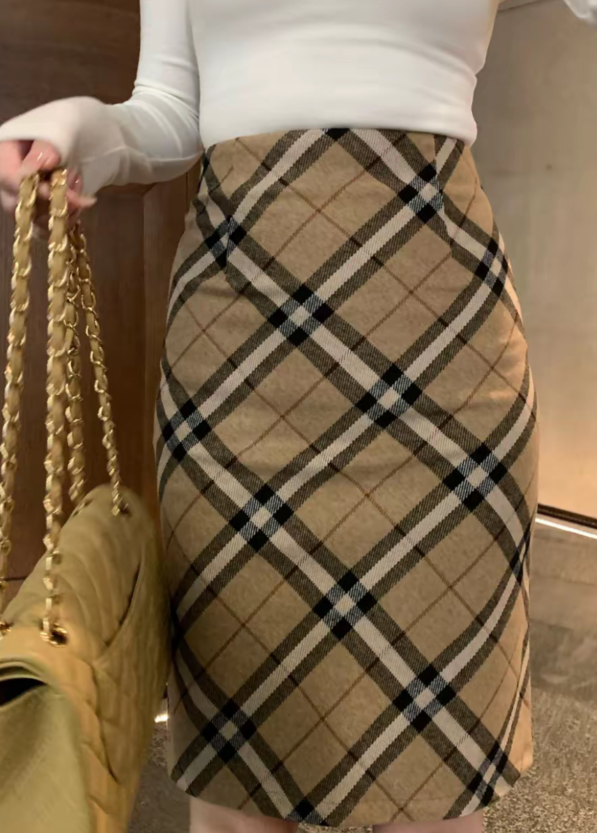【星闪花纱】气质通勤显瘦呢料格子半身裙