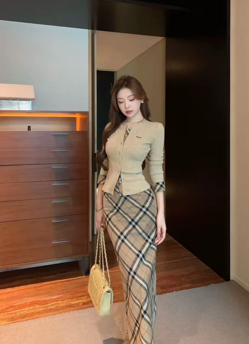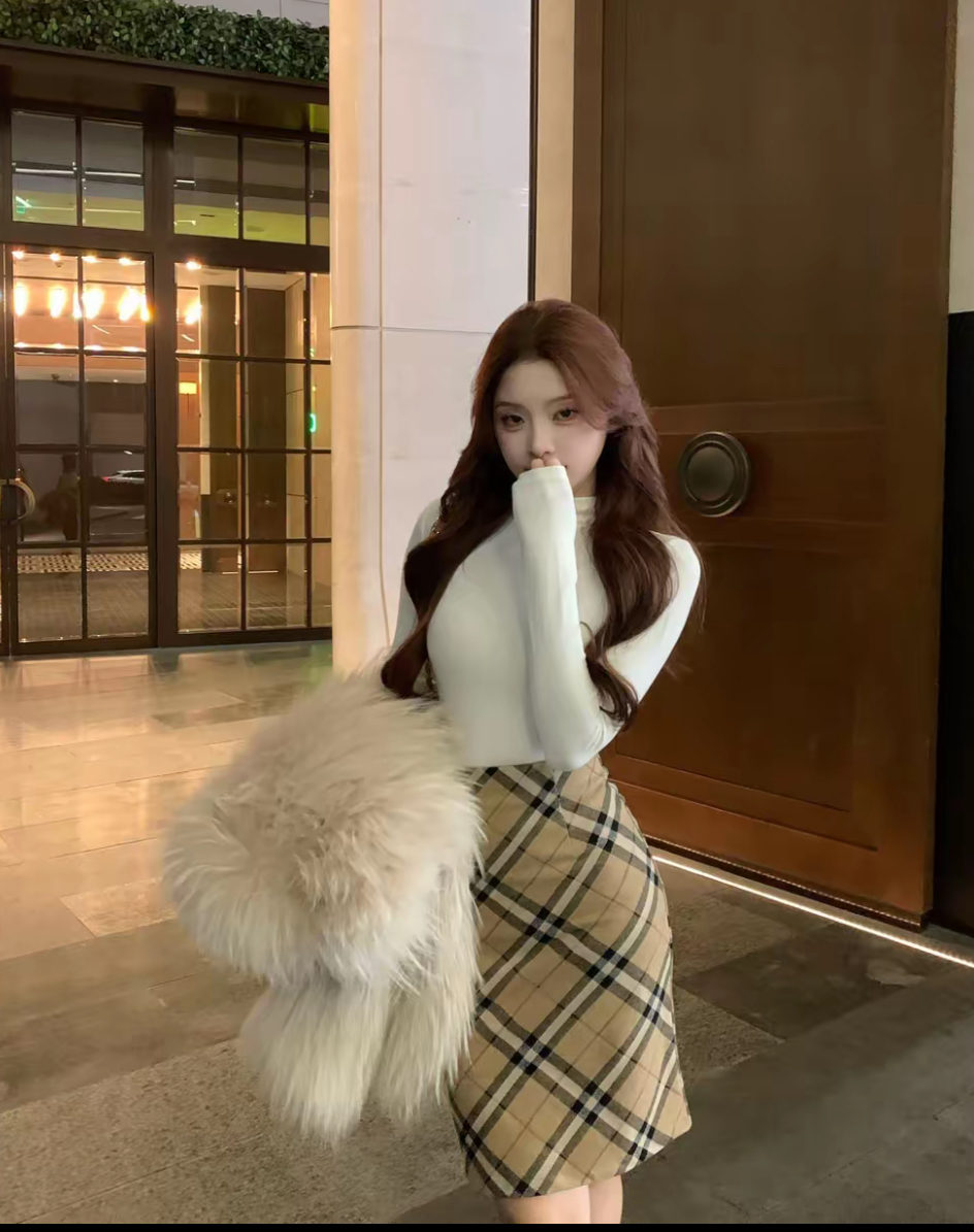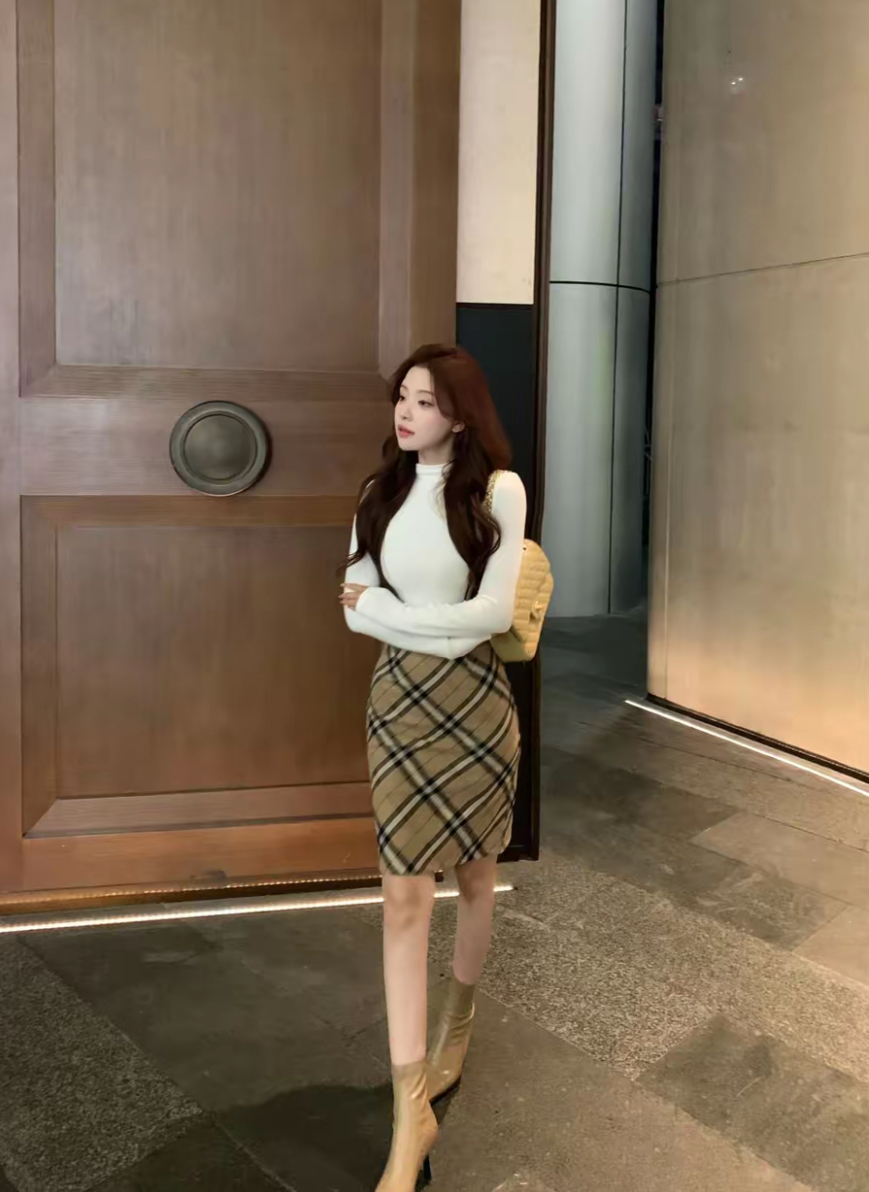 【星闪花纱】气质通勤显瘦呢料格子半身裙