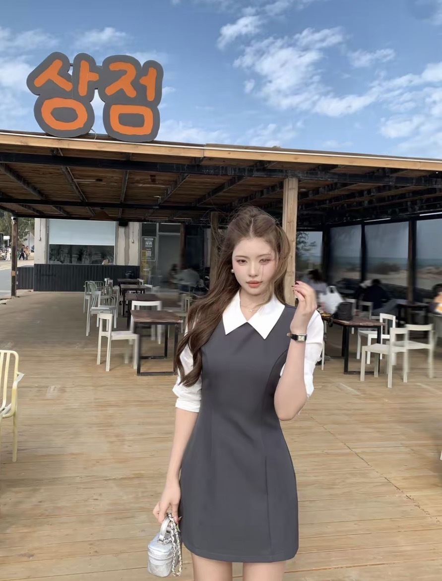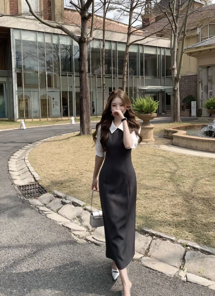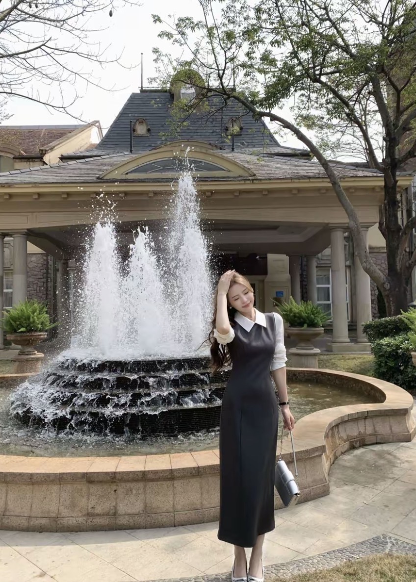 【香水百合】韩系高级千金感修身假两件连衣裙
