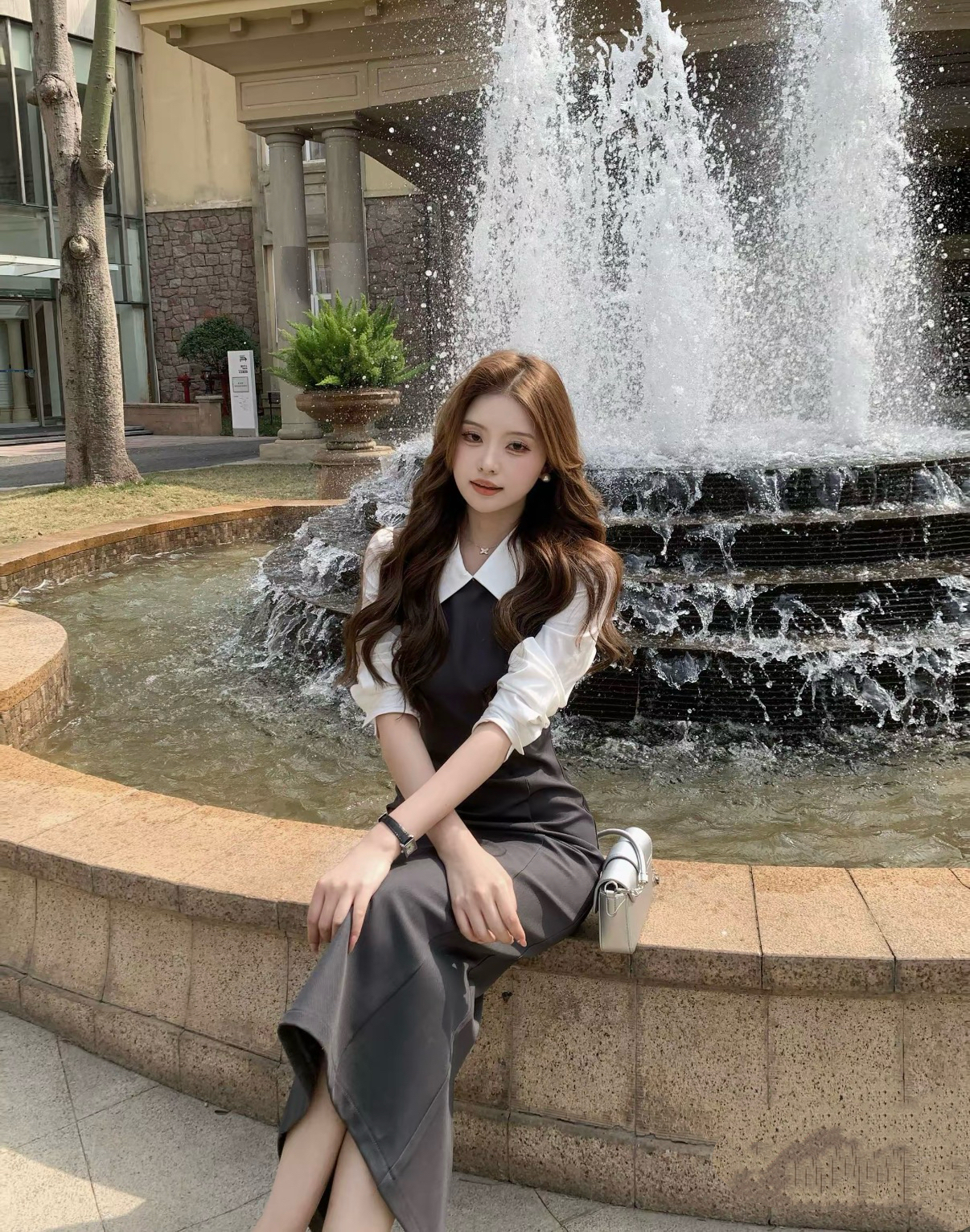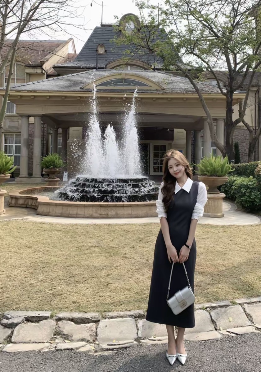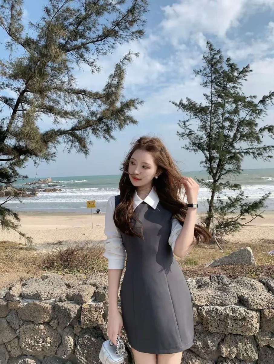 【香水百合】韩系高级千金感修身假两件连衣裙