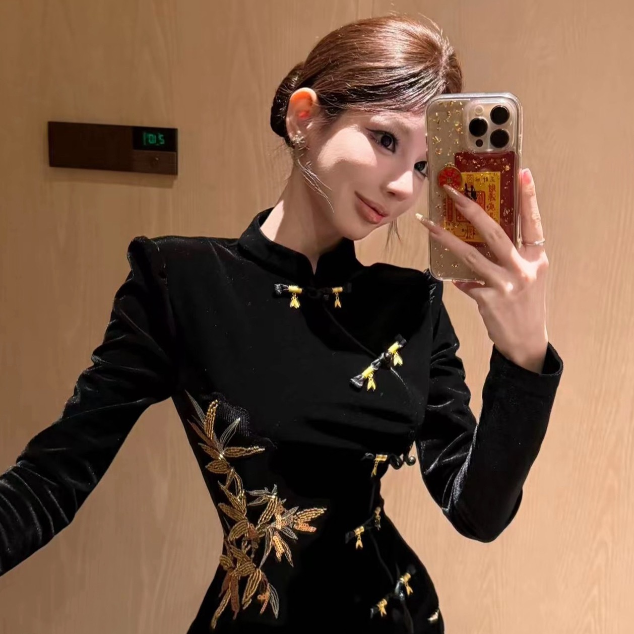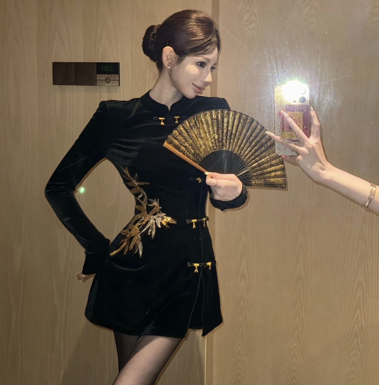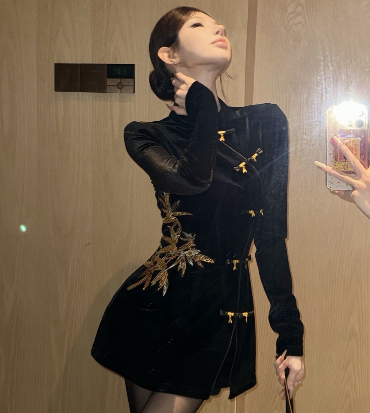 【金竹吟】新中式国风重工金竹叶丝绒上衣+短裤