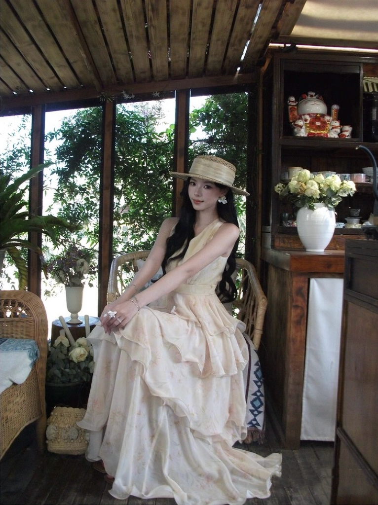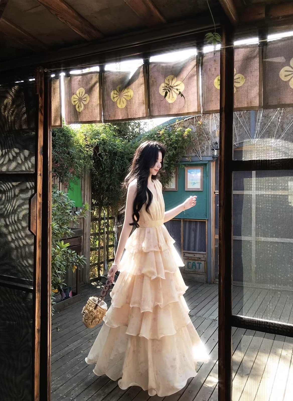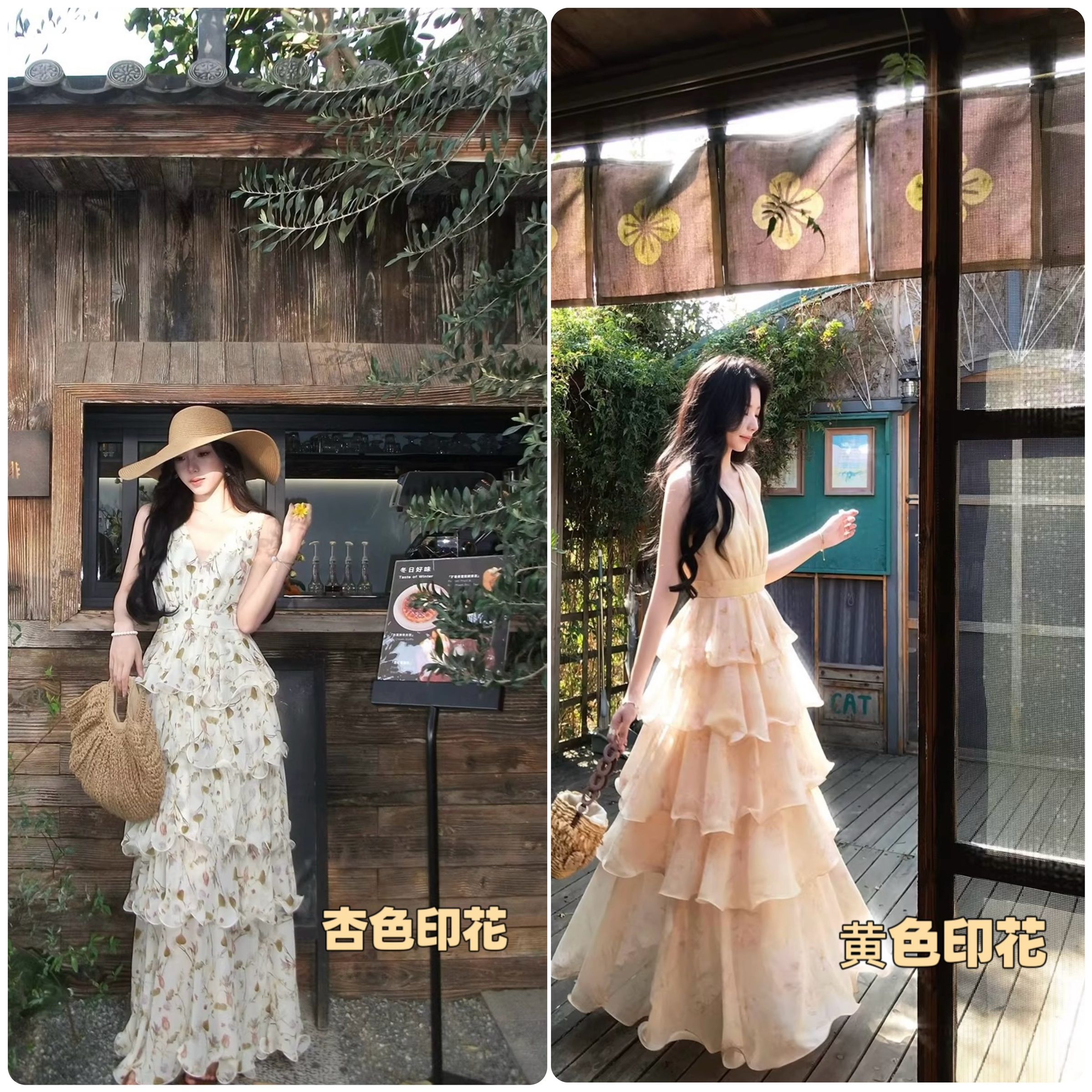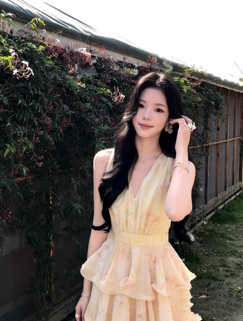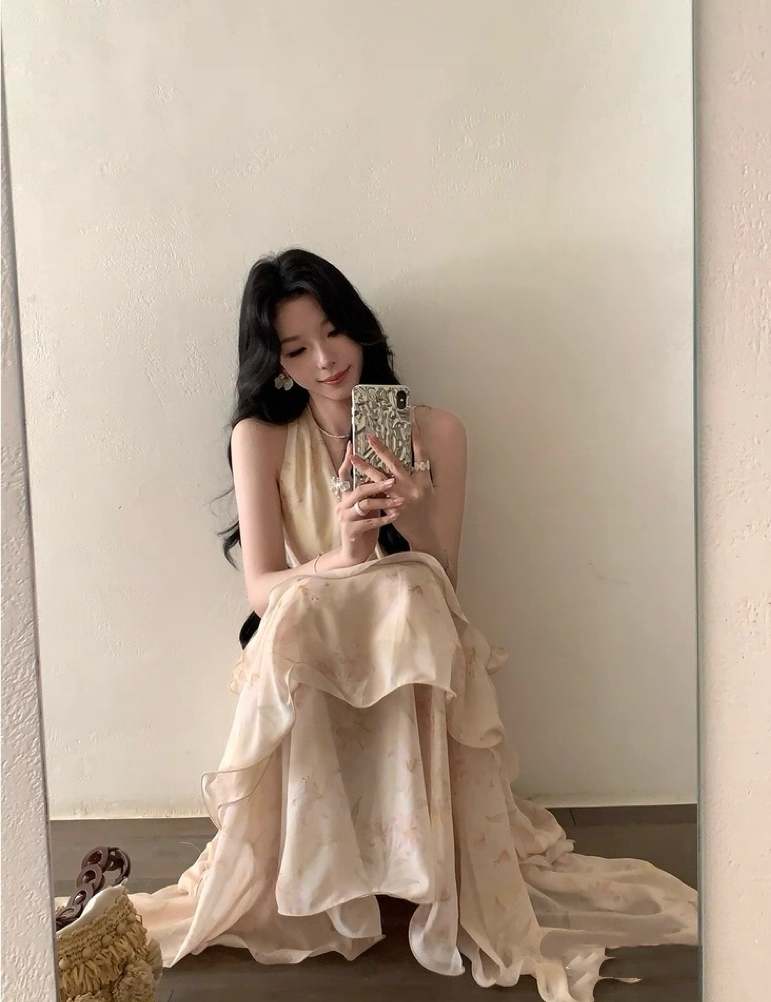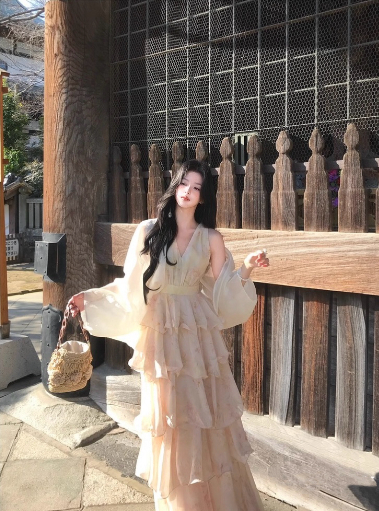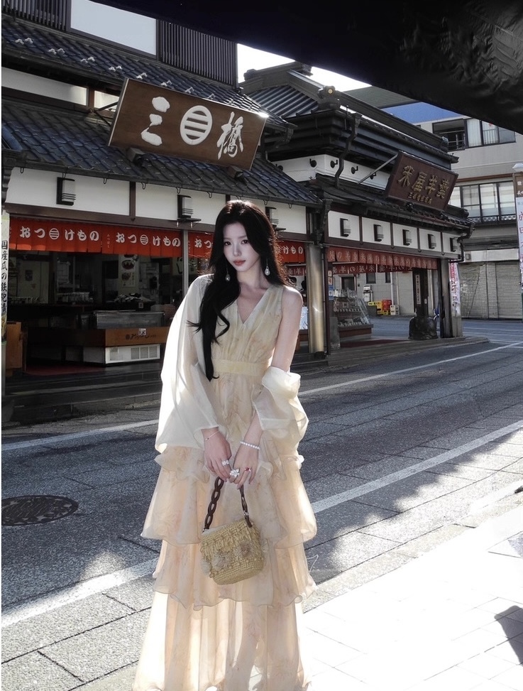 【庄园假日】度假风收腰蛋糕裙v领吊带连衣裙