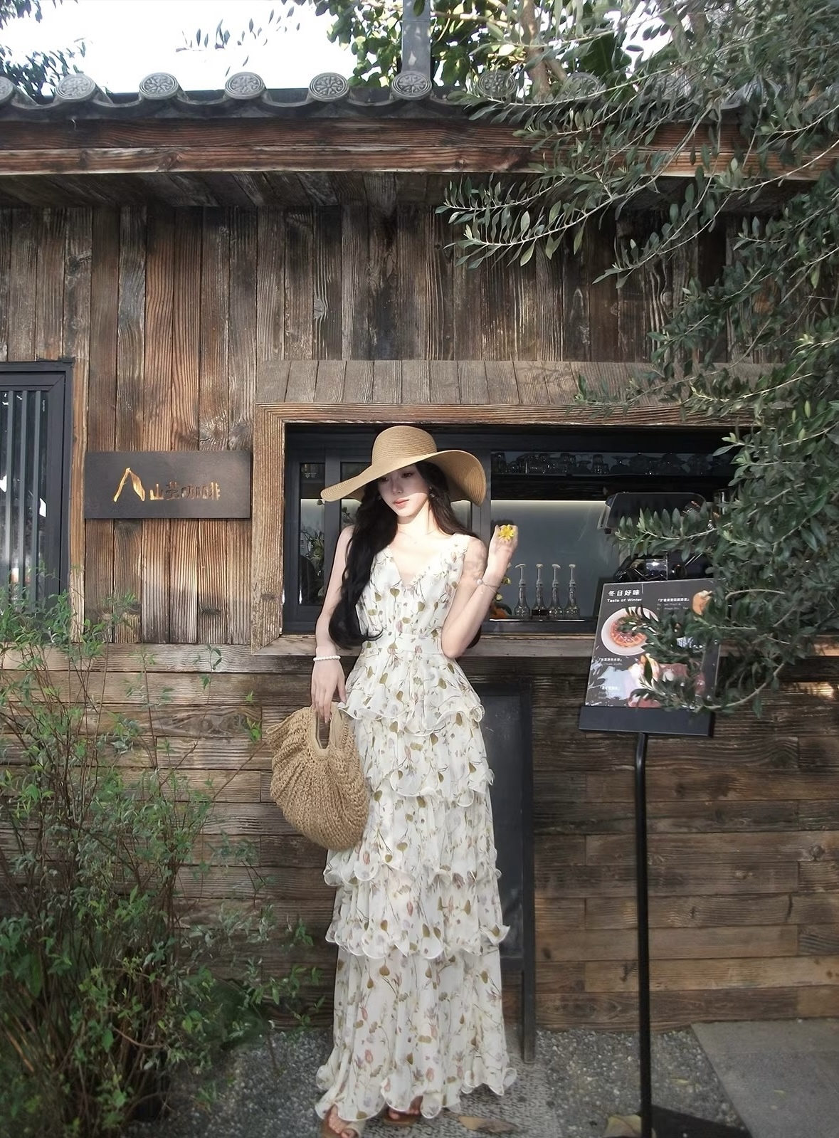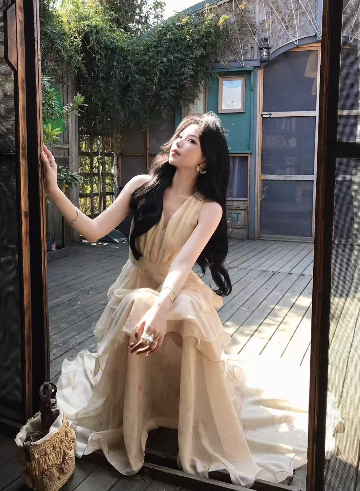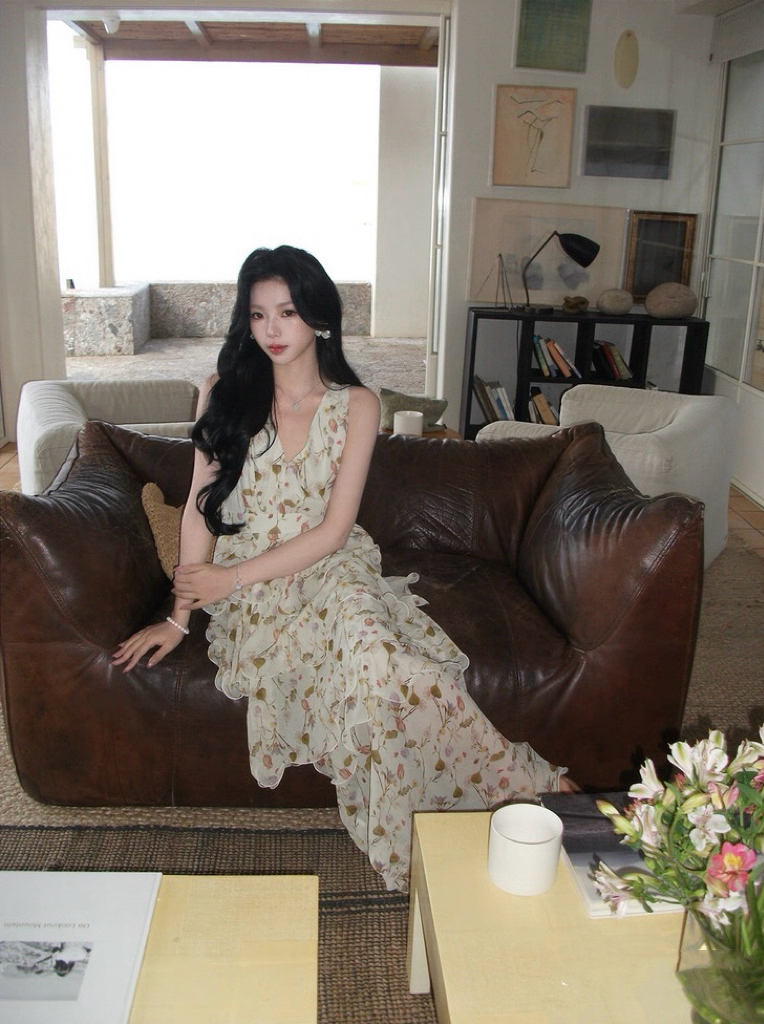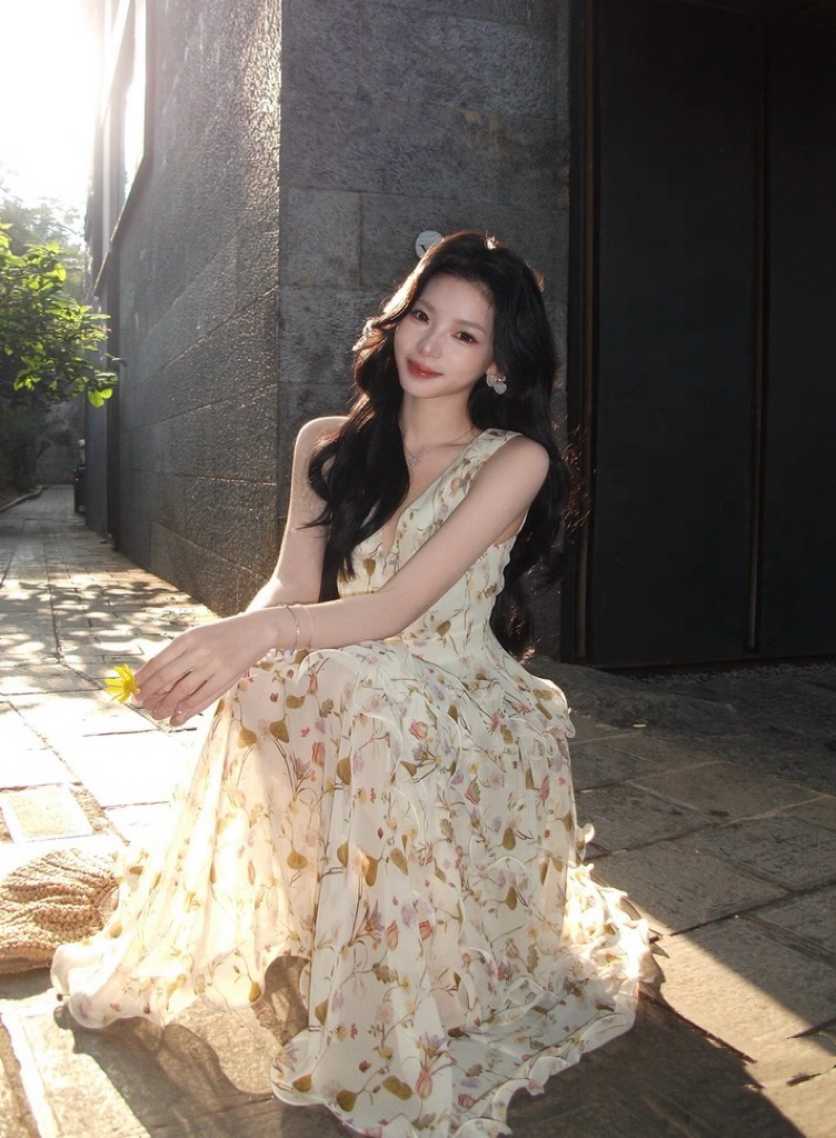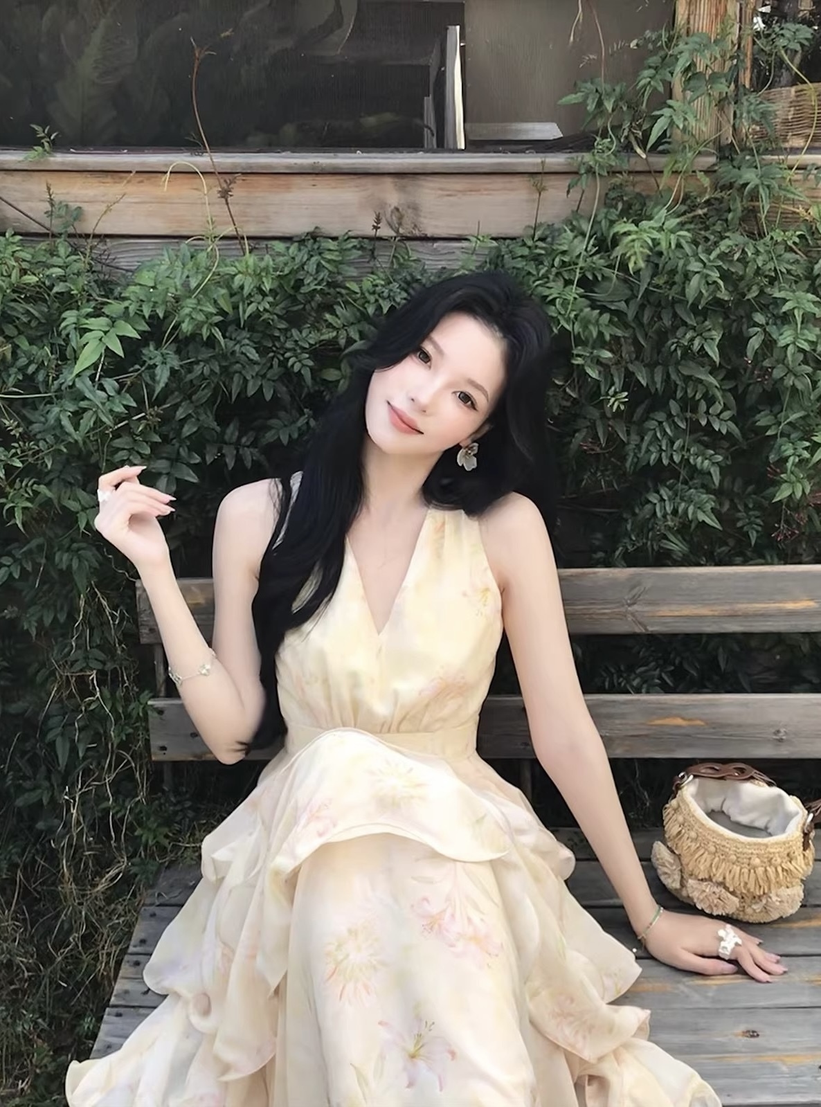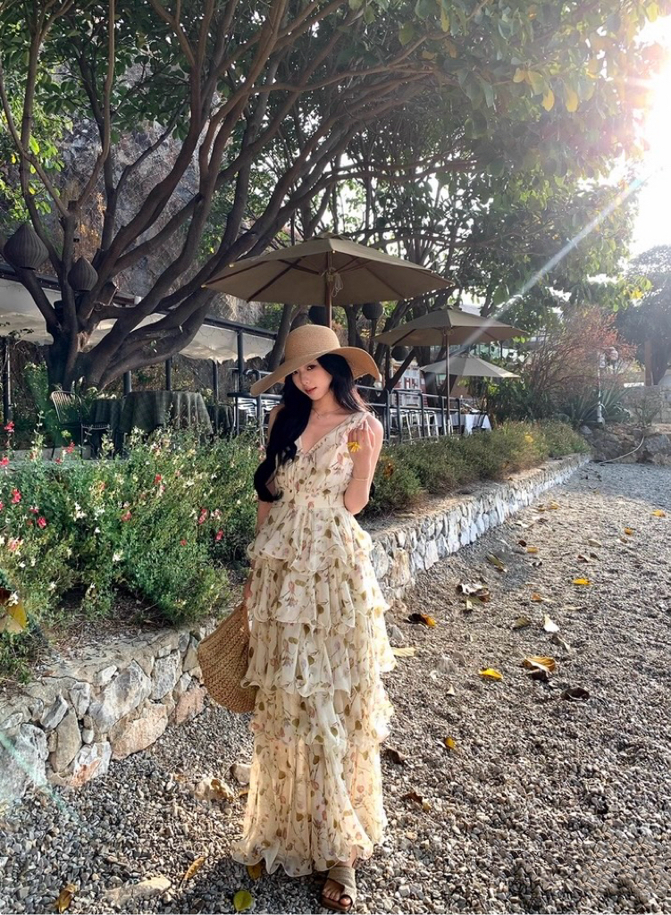 【庄园假日】度假风收腰蛋糕裙v领吊带连衣裙