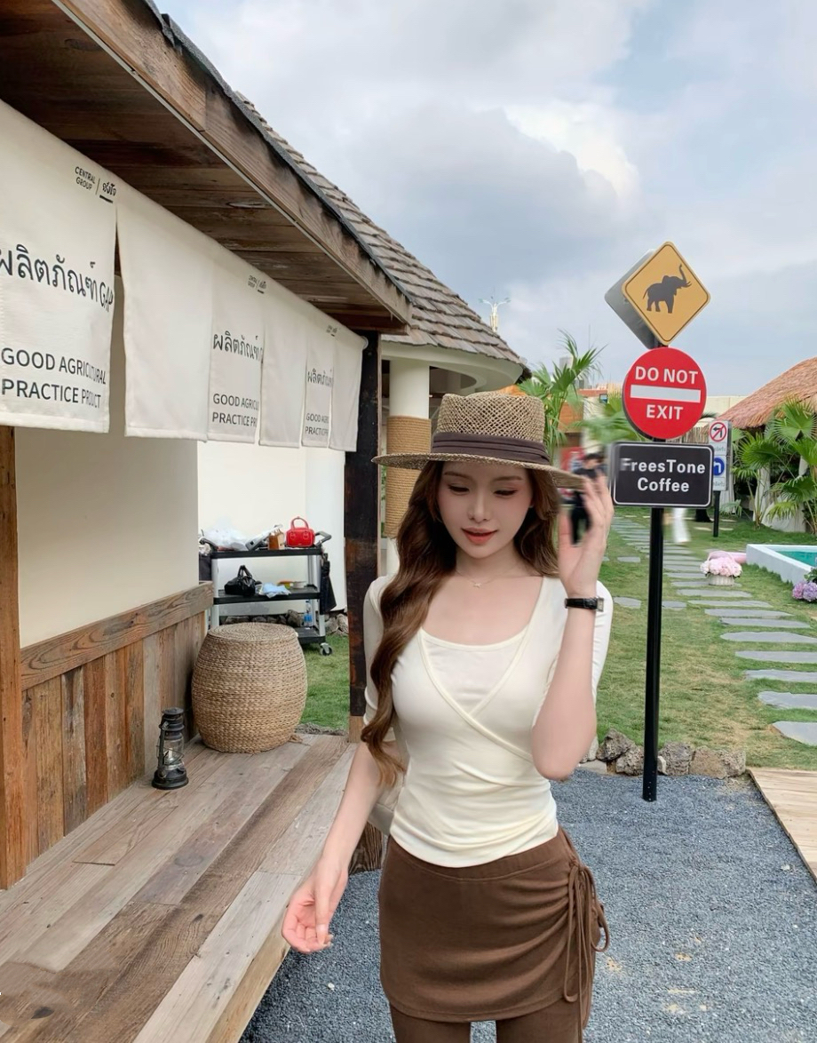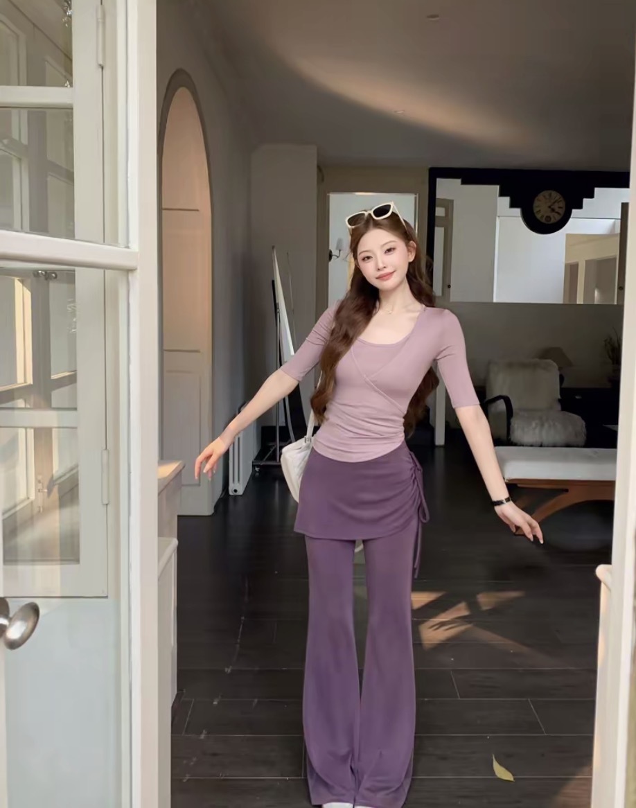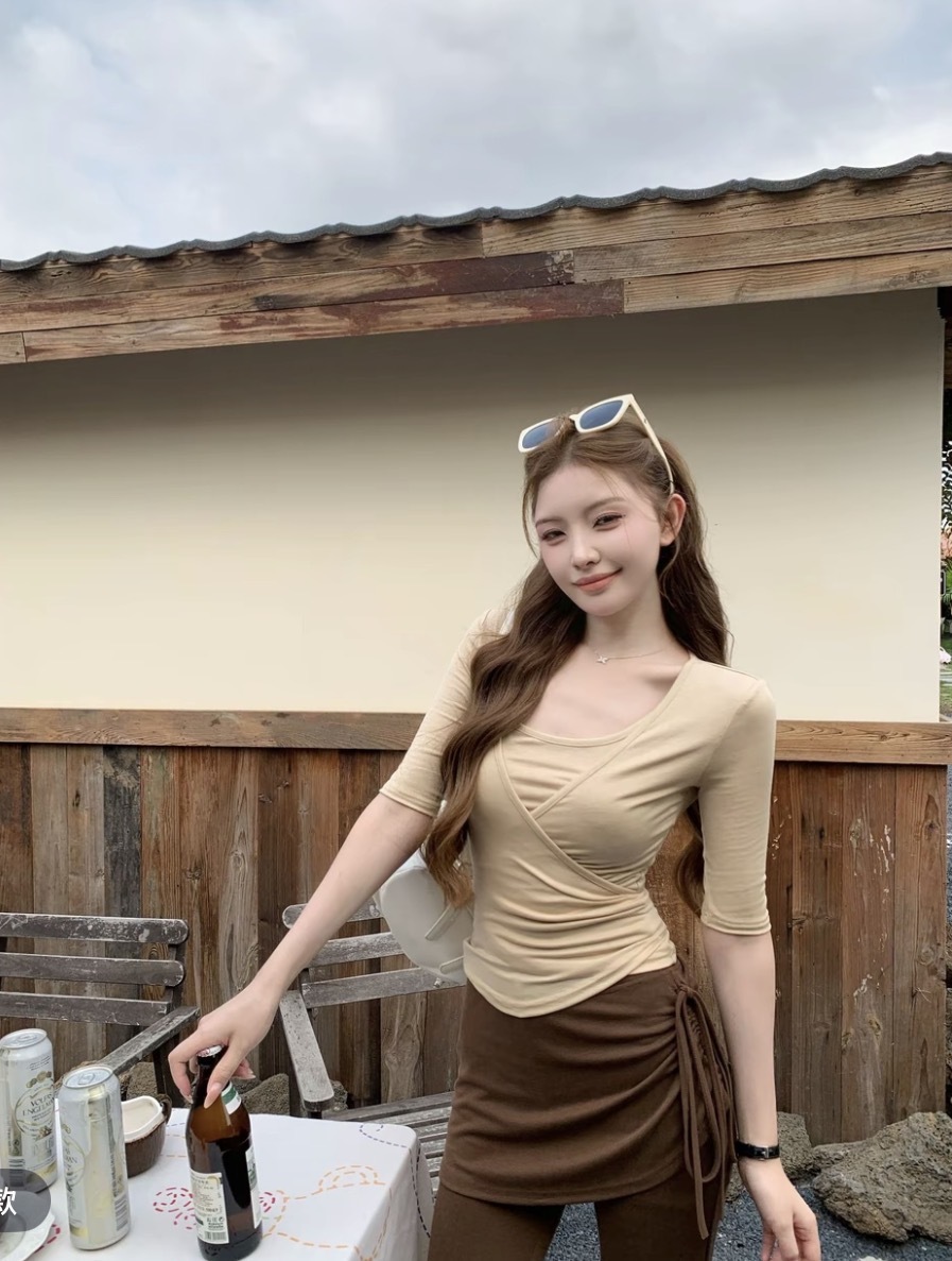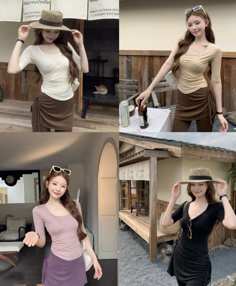 【半盏温岚】设计感时尚显瘦假两件T恤上衣A-2797