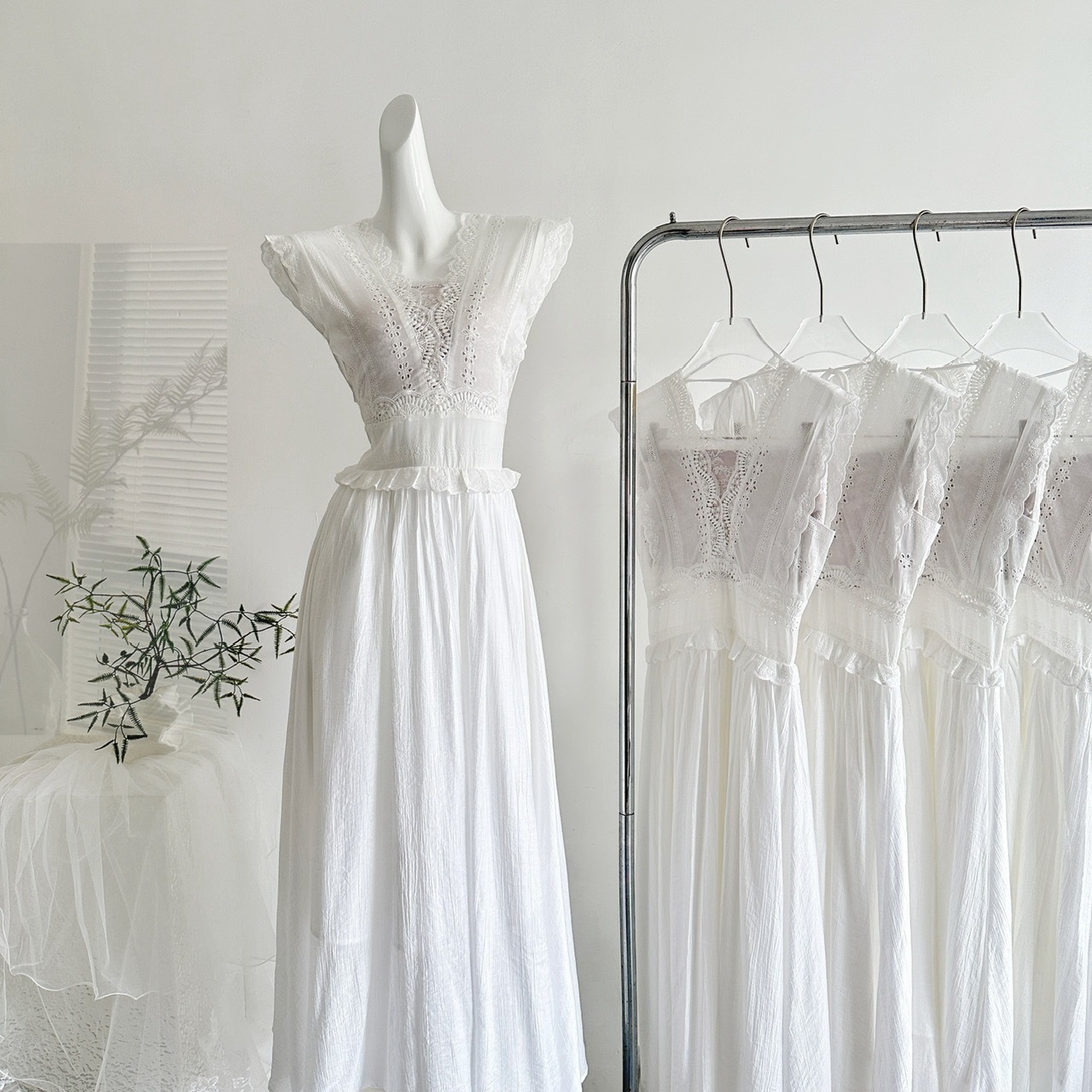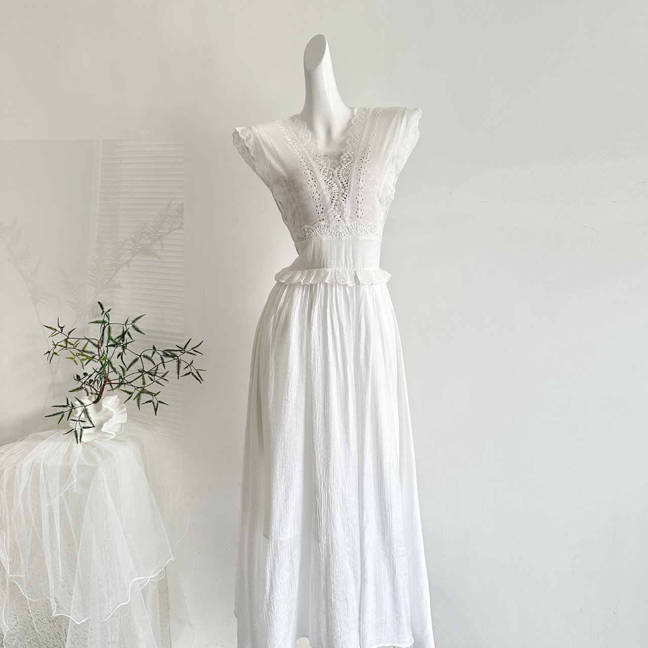 【叙夏】重工刺绣蕾丝镂空花边连衣裙