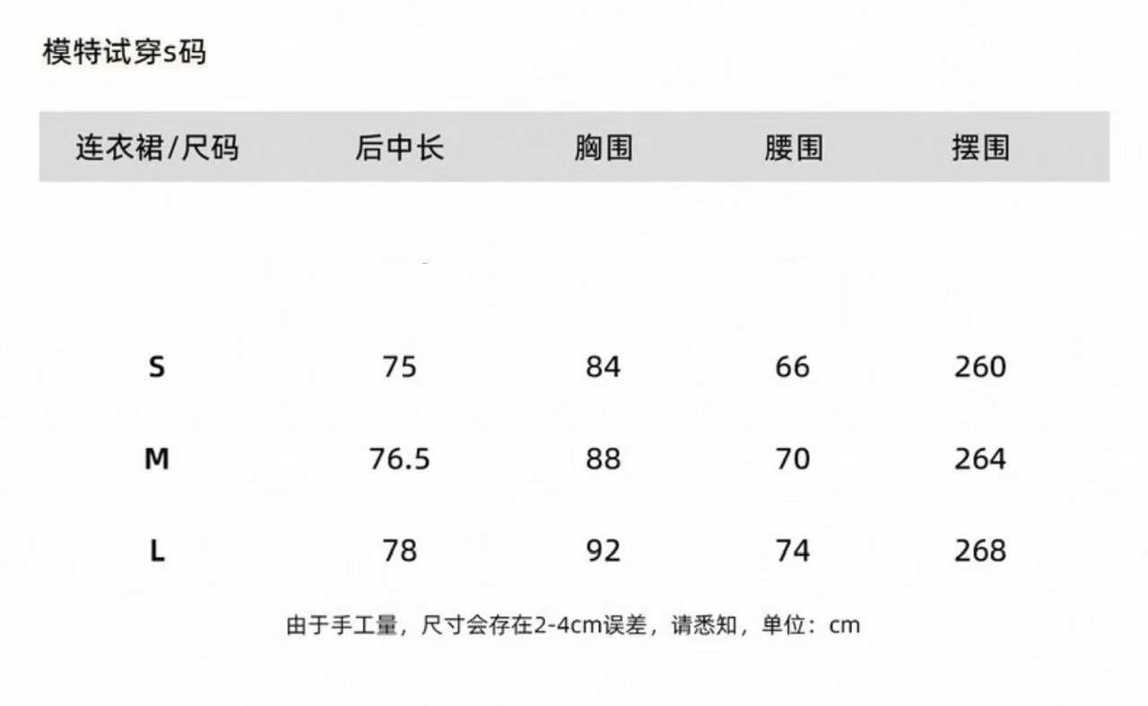 The measurement provided may vary in ± 3cm due to the elasticity of the fabric, manual measurement and other factors,and the actual product shall prevail.