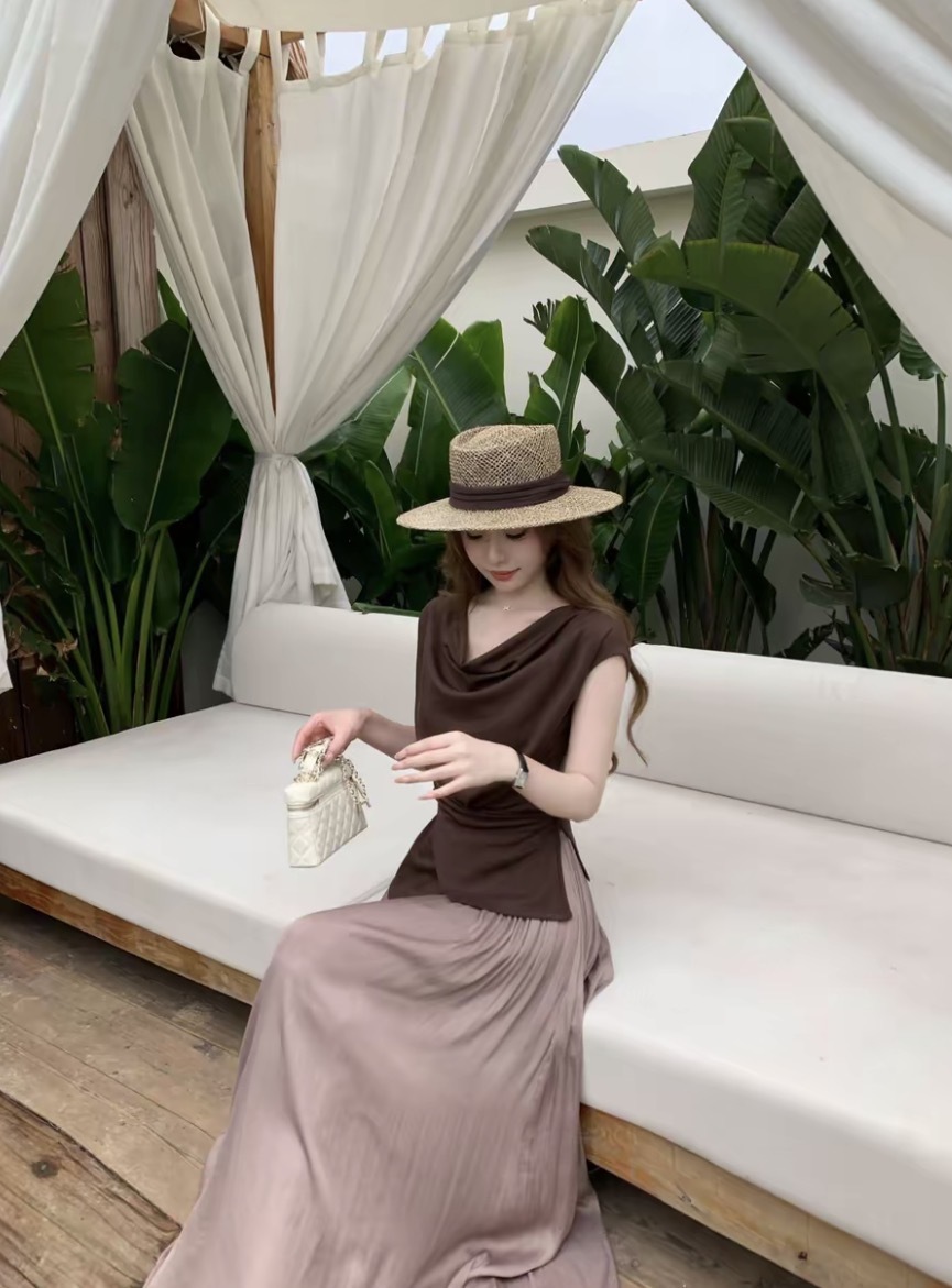 【浅夏晚照】高腰休闲设计慵懒感半身裙A-2825